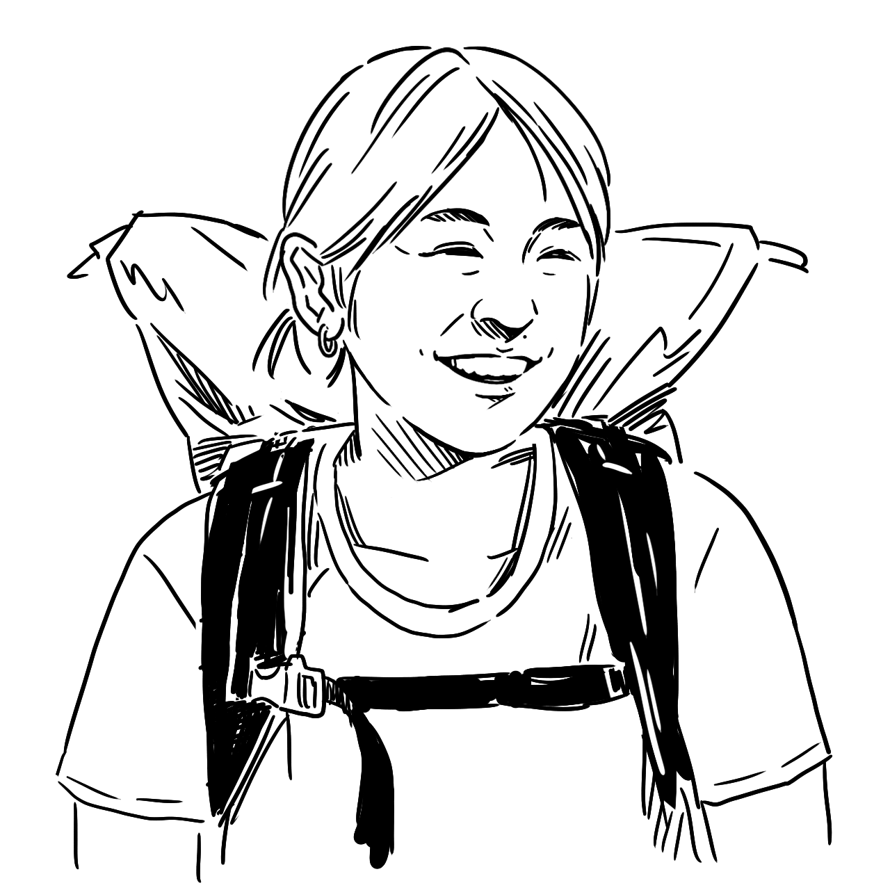 アウトドア関係の仕事をする両親の元でおんぶにだっこで育つ。そのため当人にアウトドアスキルはなく、それがコンプレックスとなり、払拭すべく山と道スタッフに。トレイルを歩いている時に過去と現在と向き合える時間、しがらみや脂肪に重みを感じつつ、日々どうしたら軽くなれるのか妄想している。アーティストとしても活動中。感情が素直に出るスタイルのイラストには定評があり、鎌倉を中心に展示会も開催。絶賛お仕事受付中。夢は森の中にサウナ併設のアトリエを持ち、アーティストとして自立すること。その夢に向けてもがく日々を送っている。