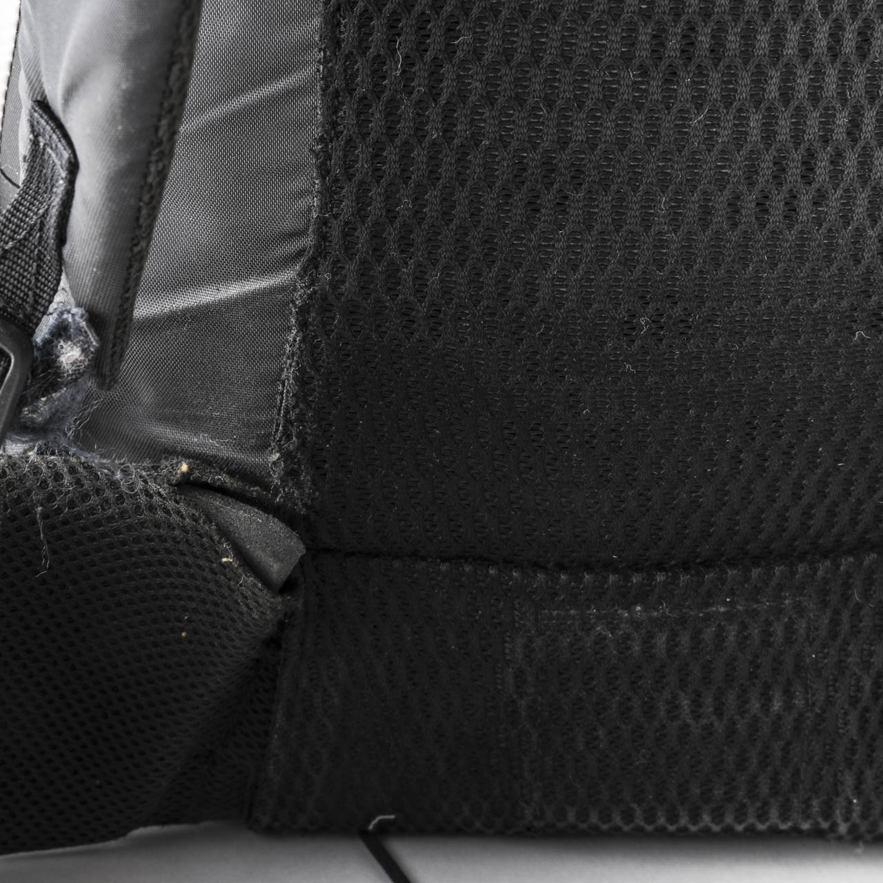 The mesh part of the hip belt is also prone to wear and tear. If there is a small tear, it can be repaired by patching, but if the wear and tear is severe, the entire hip belt will be replaced. In this case, the mesh part and the inner padding was comepletly worn out so we decided to replace it.