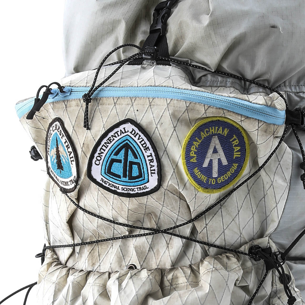 Among the stains that give the overall appearance of heavy use, the first thing that catches the eye are the three patches. A dead giveaway, the user is quite the adventurer, hiking the top 3 long-trails of the US.