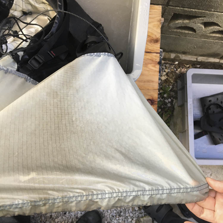 The 70D nylon of the body as well as the X-PAC pockets were noticeably dirty, so we first cleaned them before repairing (we do not normally offer cleaning services for repairs). When hiking for a long period, dirt and oil stains build up on the surface.