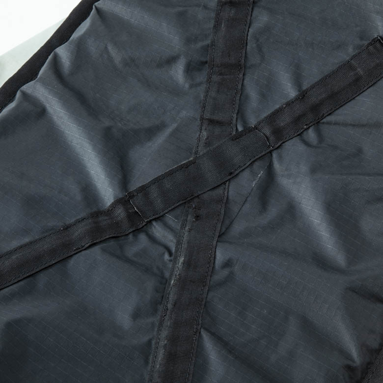 Although X-PAC is a sturdy material, it may develop holes due to continuous friction or contact with sharp objects. The high-strength fibers are arranged in a grid pattern, so it is unlikely that a small hole will cause a large tear, but if a hole does occur, please repair it as soon as possible.