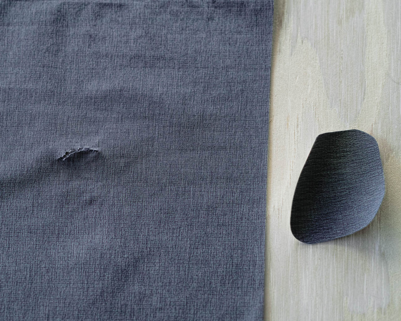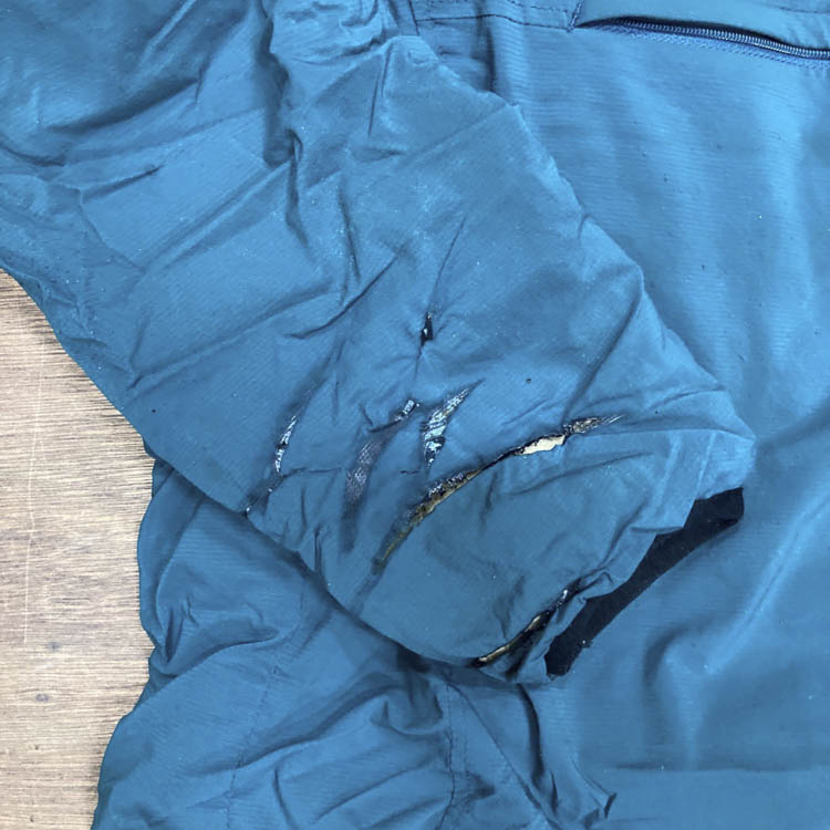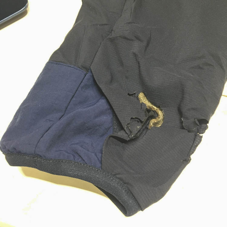 Next, I’ll explain the method for repairing holes in products made with synthetic fibers, such as the 5-Pocket Pants, Alpha Anorak, and UL Rain Hoody.