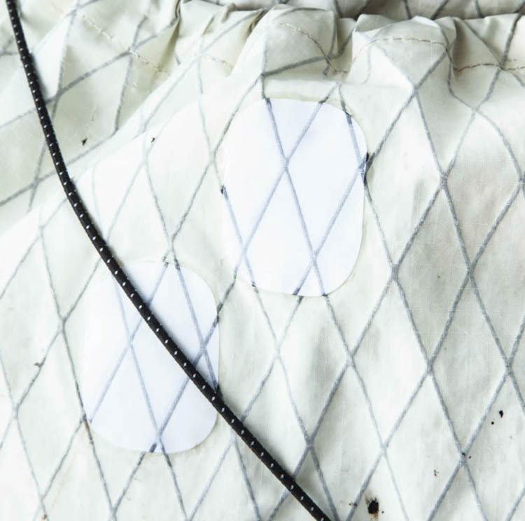 Considering water resistance, we prefer not to use machine stitching if possible. However, due to the comparatively weaker durability of other repair methods, it’s common to reinforce the adhesive with machine stitching after application.