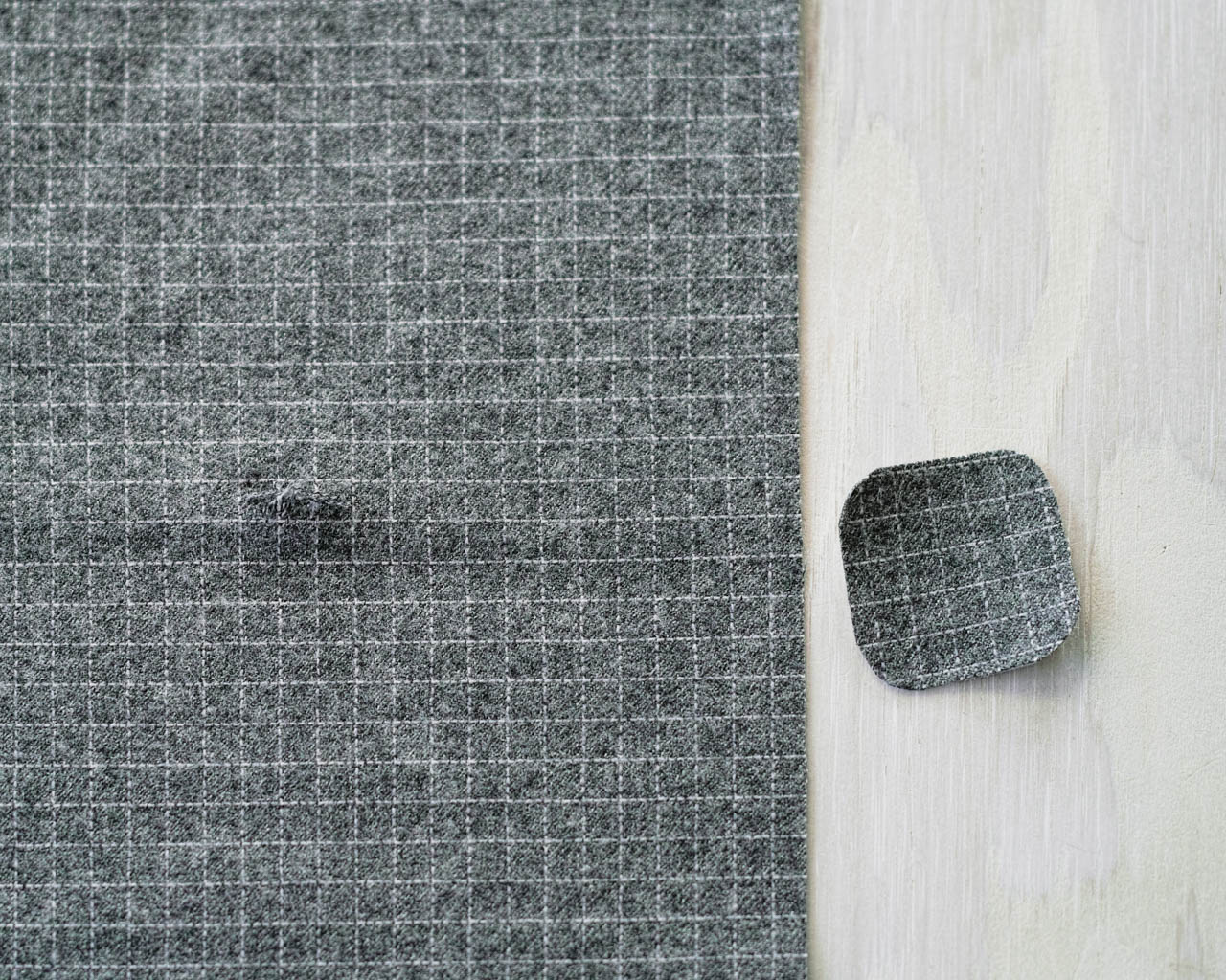 Normally, what might be considered a drawback of the fabric (such as wool felting) can become an advantage in repairs. Considering methods for repairing holes can be a good opportunity to confront the characteristics of the fabric.”