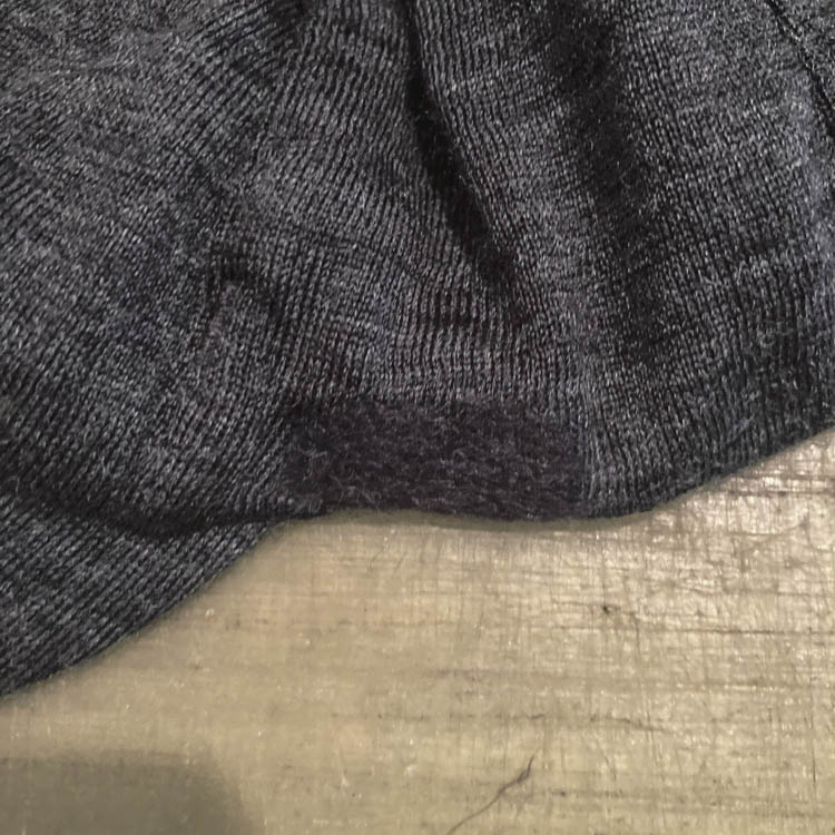 For Yamatomichi 100% Merino Series products and 100% Light Merino Series products manufactured after 2021, the yarn structure has changed from twisted yarn to single yarn, requiring even more careful handling. If you’re unsure about the repair process, our repair department accepts hole repair requests. Please contact us via the Repair Page for inquiries.