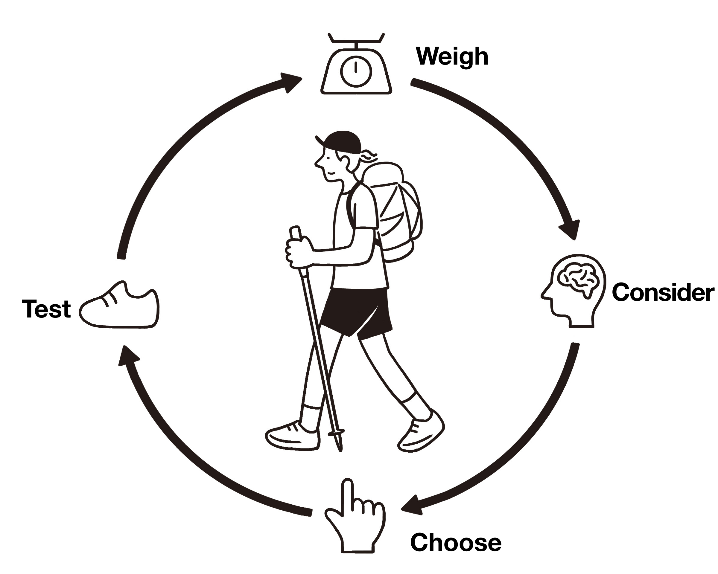 Once your hike is over, look again at what you used and what you did not. Then return to the four steps—weigh, consider, choose, and test. With each cycle, your gear becomes more refined, and your own style of hiking begins to take shape.
