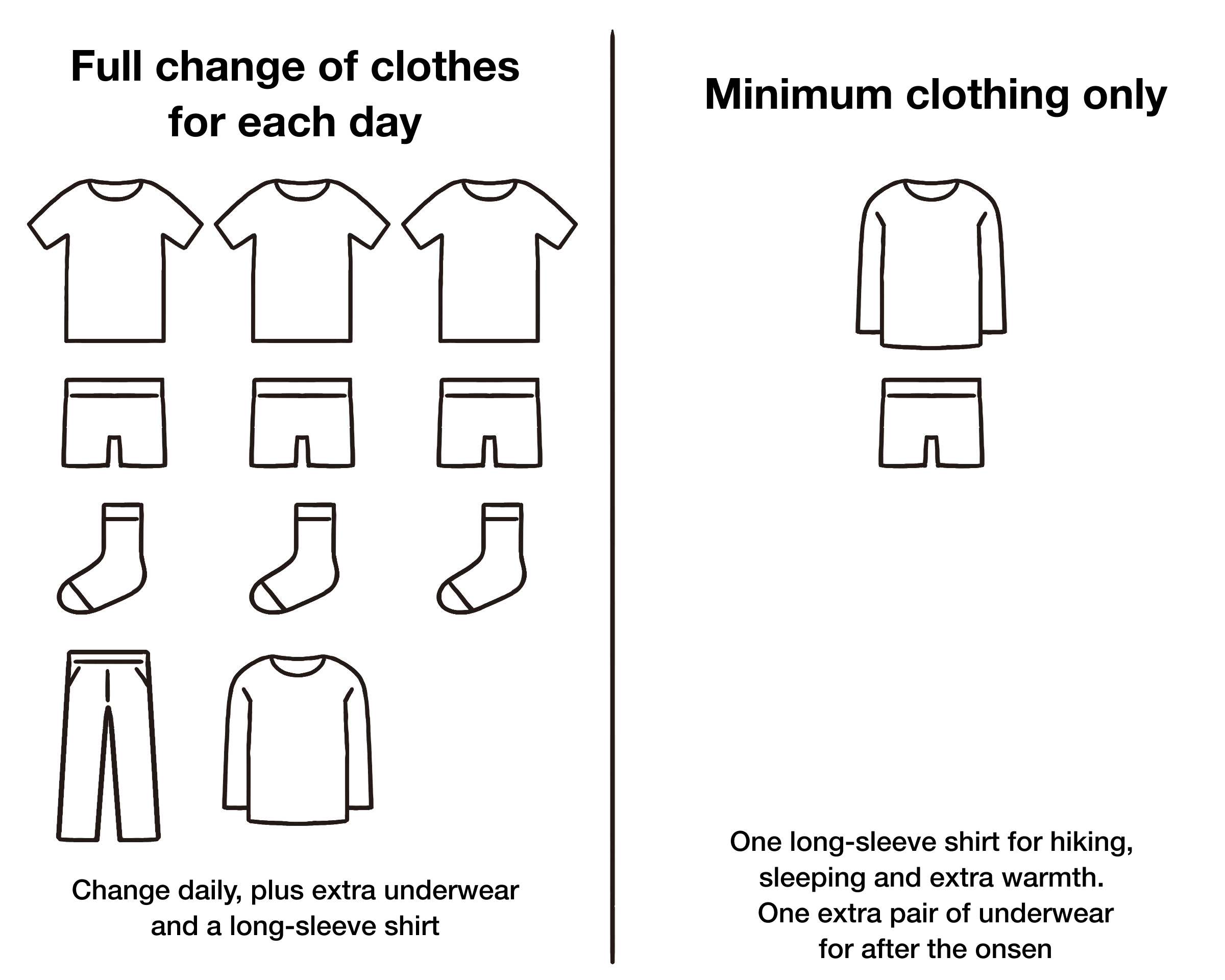 Choose odor-resistant materials like merino wool, or clothing that dries quickly after washing. That way, you can wear the same pieces for several days and may not need to carry spare clothes at all.
