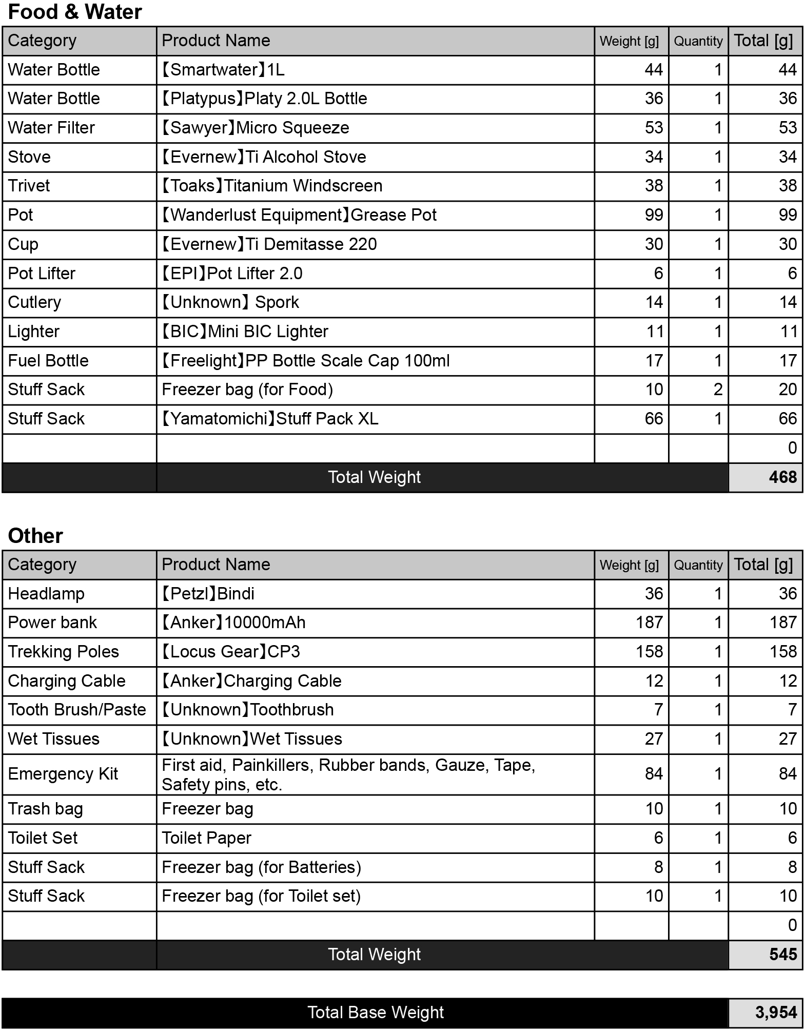 The weight of your full kit excluding consumables is called your base weight. The total weight including consumables is called your pack weight. Because consumables change as you hike, base weight is the more useful benchmark when you are thinking about reducing pack weight.
