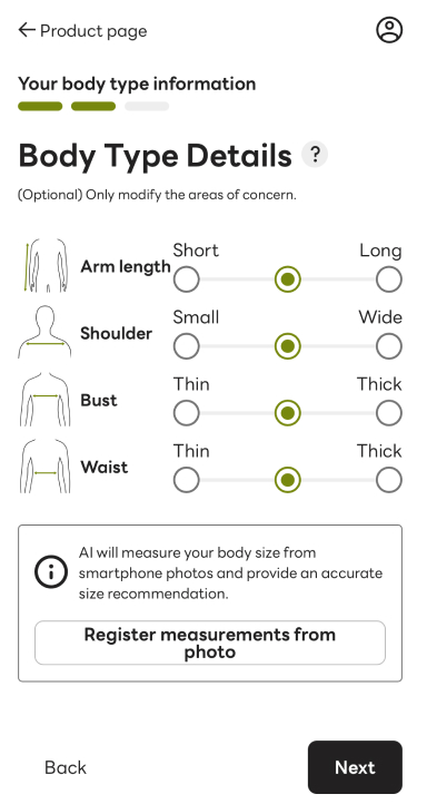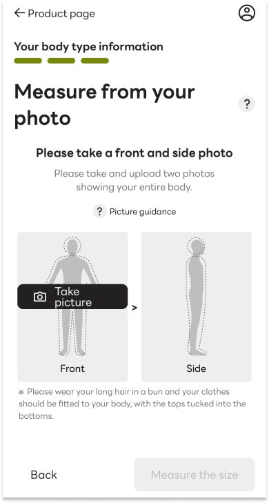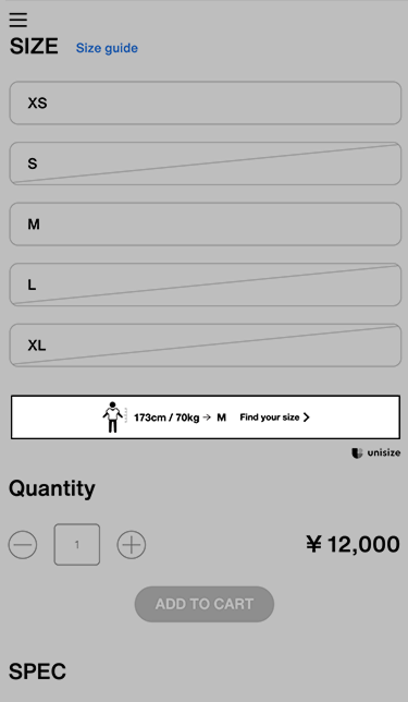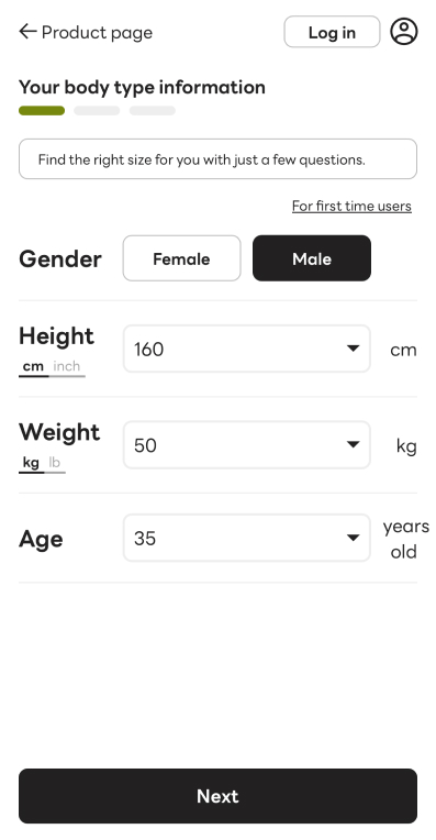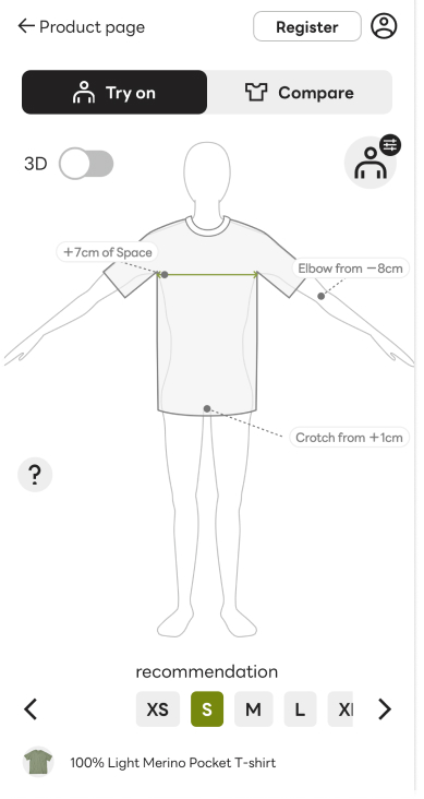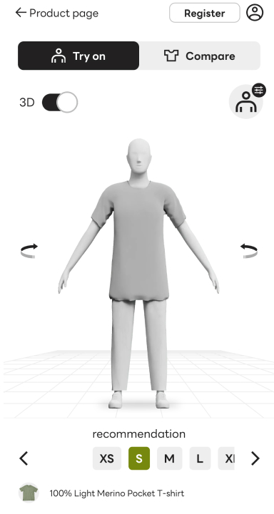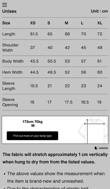 unisize helps you find the size that best fits your body. Answer a quick, one-minute questionnaire and it will suggest the most suitable size, even showing how it should look and feel as a silhouette. You can also compare with items you already own or past purchases.