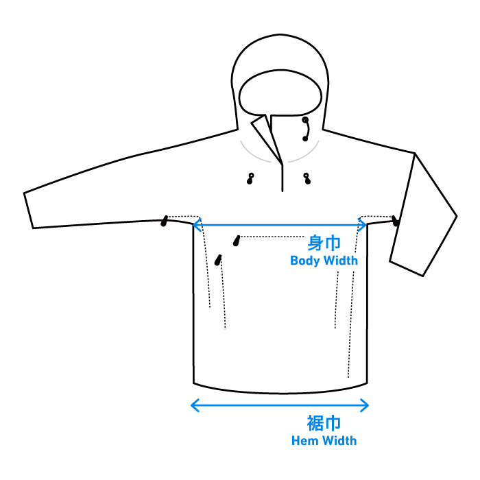 The left zipper can be fully opened and detached to let in air and to make the anorak easier to put on or take off.