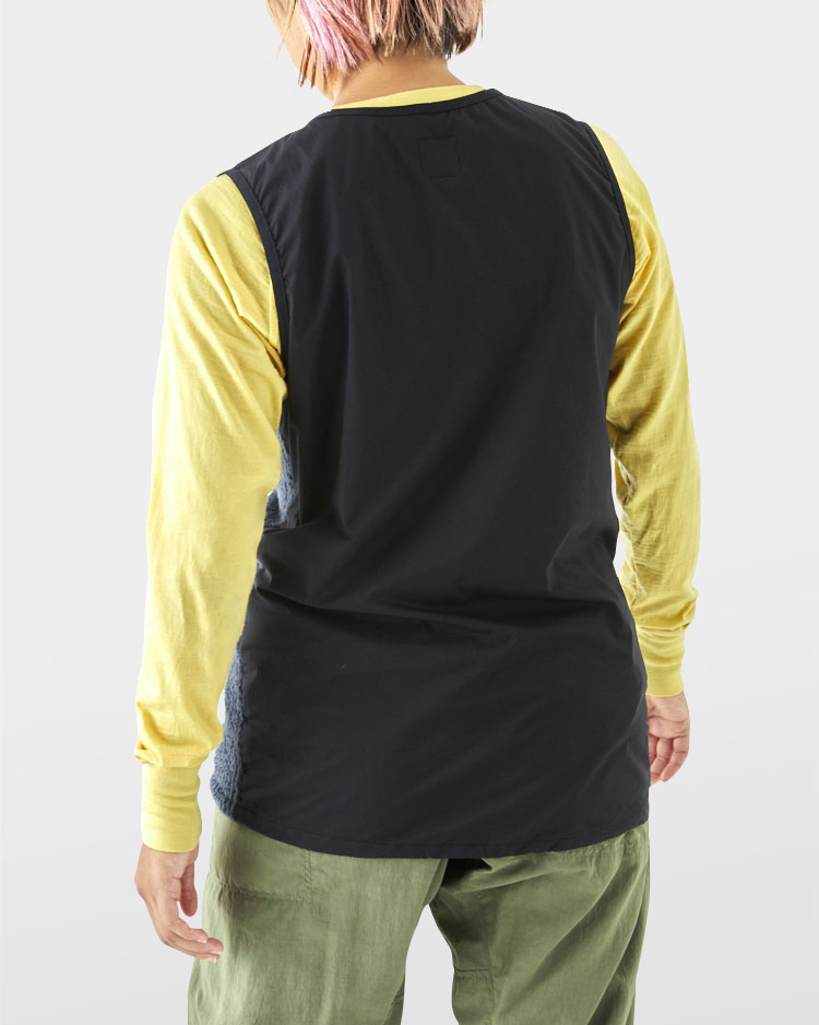 To maximize the superior air-permeability of Polartec Alpha Direct, the shell material of the Alpha Vest uses Pertex Quantum Air, an ultralight and breathable nylon fabric with a durable water repellent (DWR) finish.