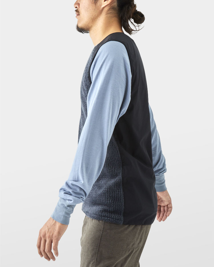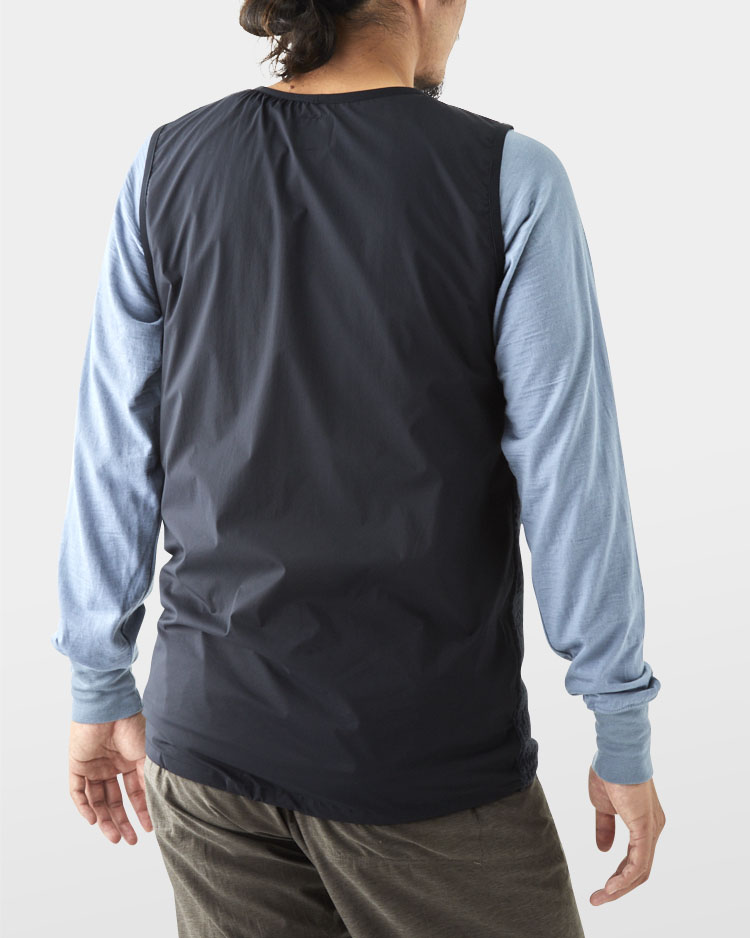 Used in combination with our UL All-weather series shells is especially recommended. If the UL All-weather is worn over the Vest, it properly blocks the air to keep you warm.