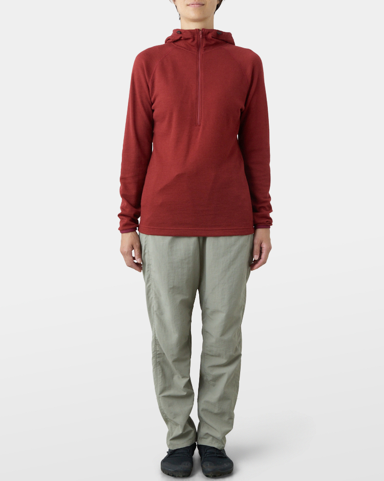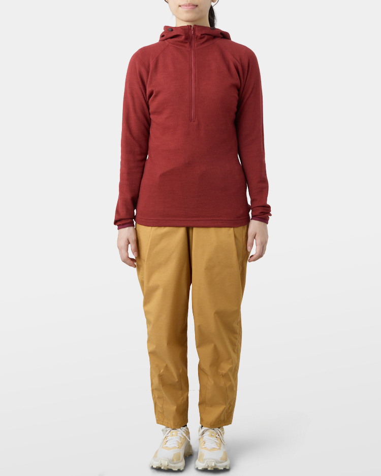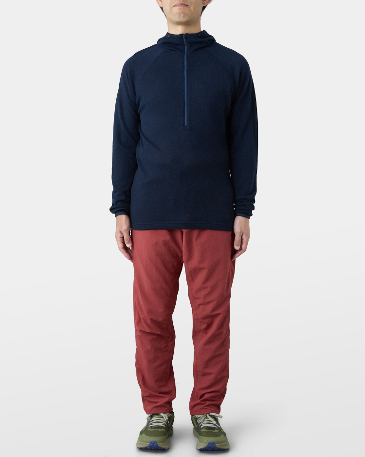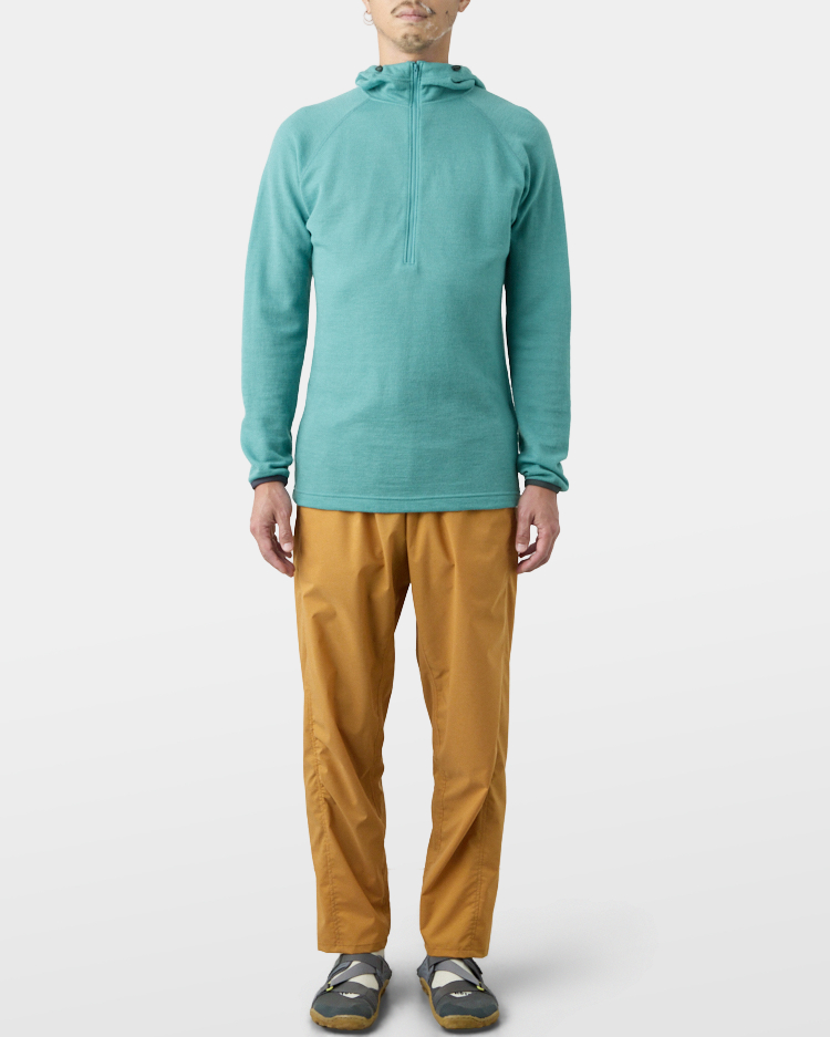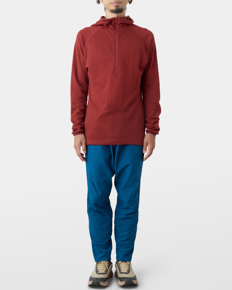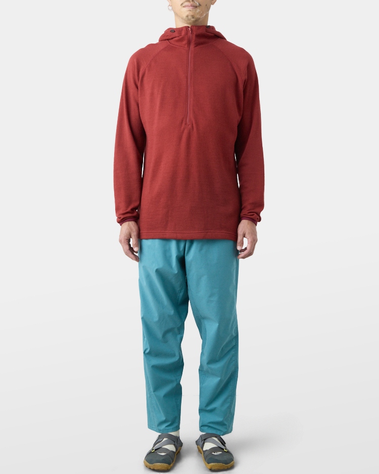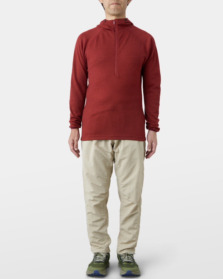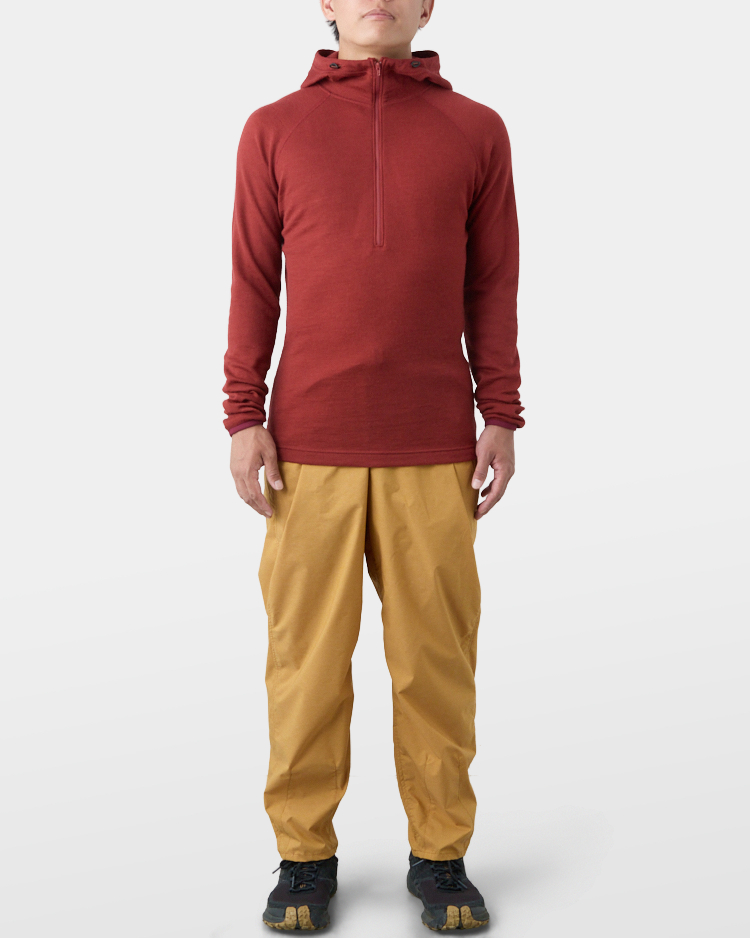 It is warm even when soaked with rain because it is made of wool with humidity-control performance and heat-generating properties. It is especially suitable under severe conditions with large temperature differences between day and night, mountaineering from low to high altitudes, and climbing where inclement weather is expected.