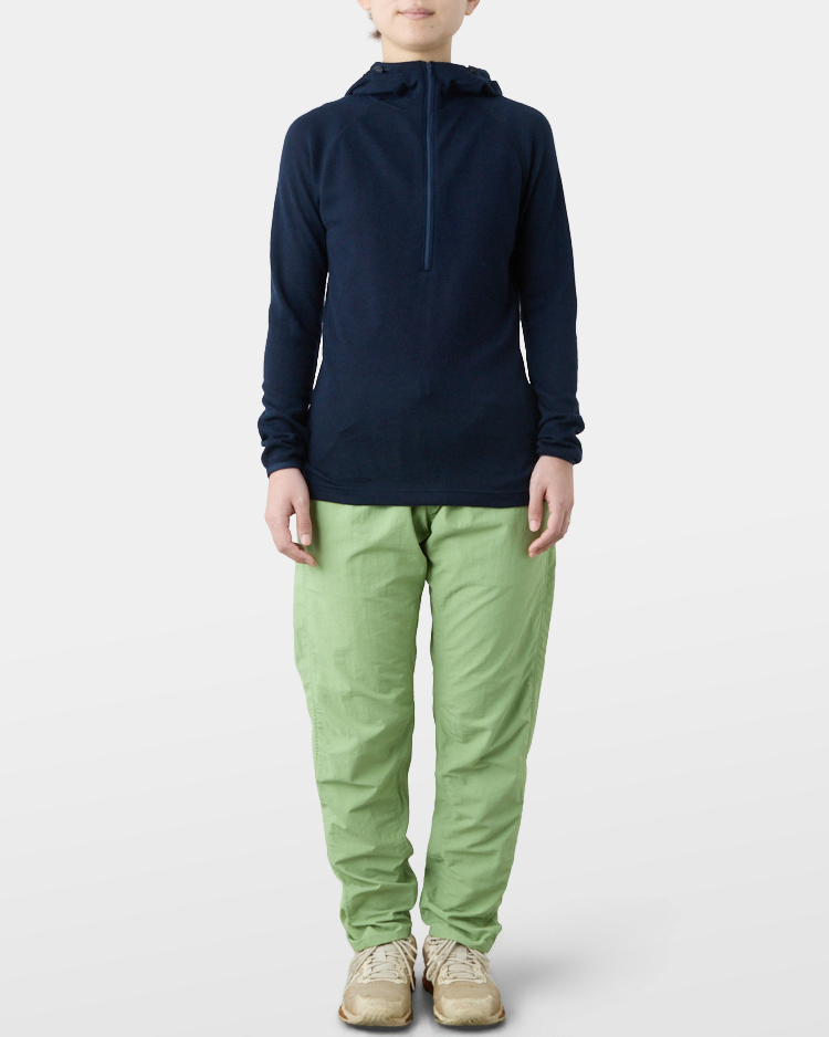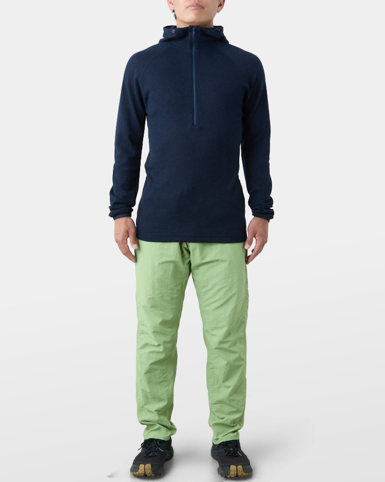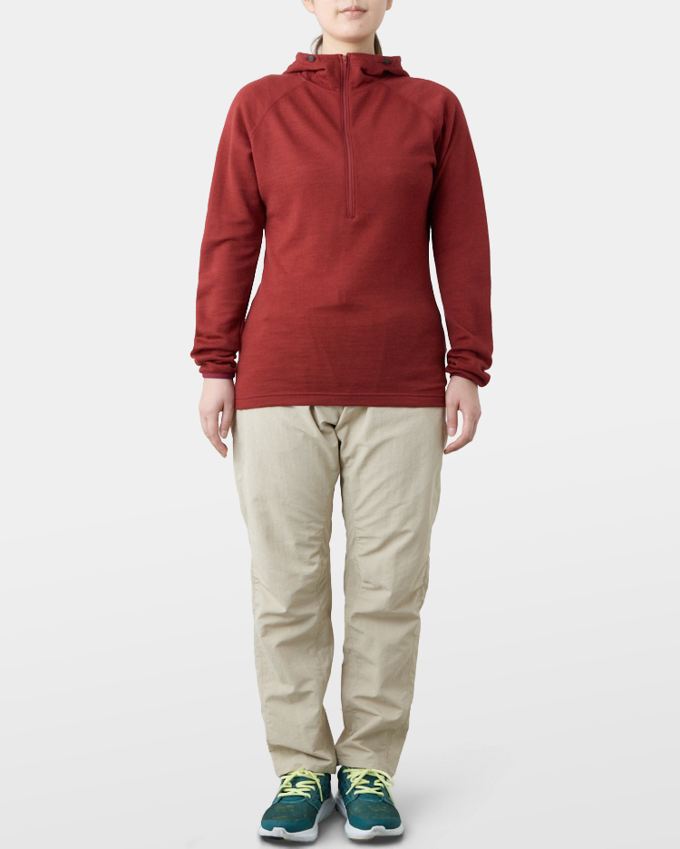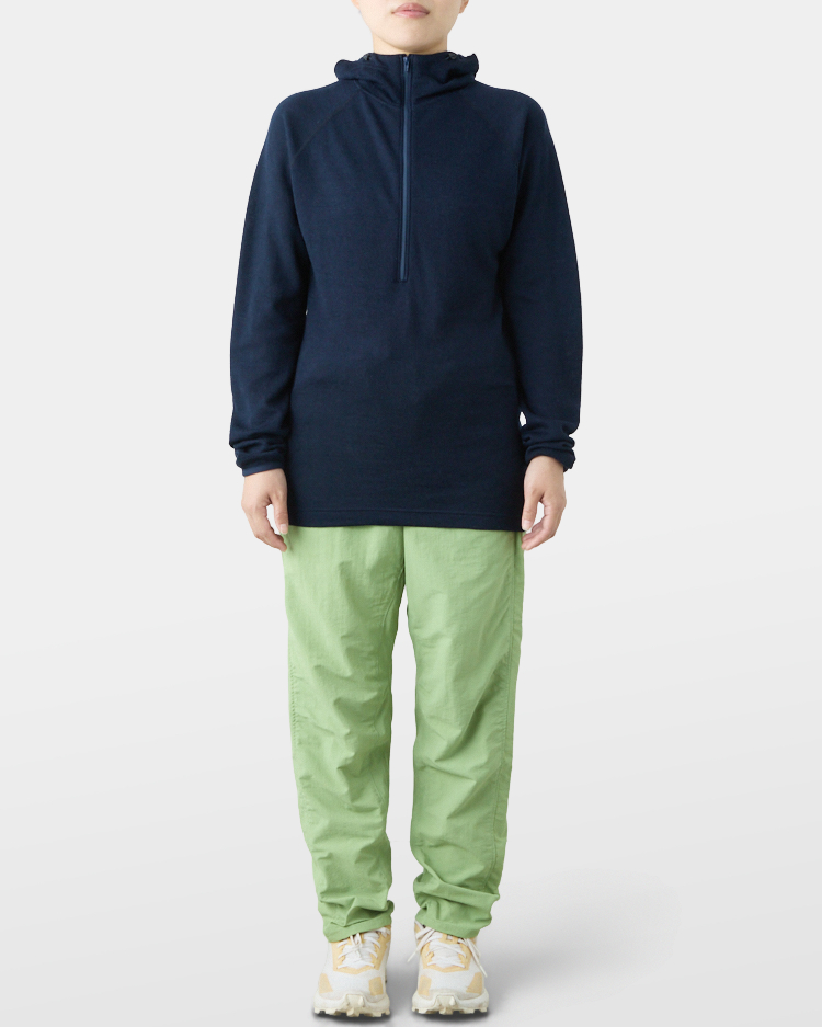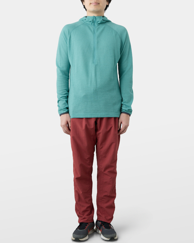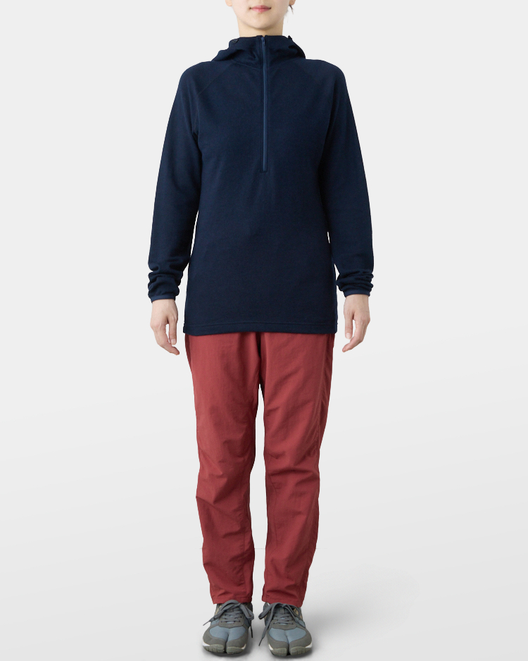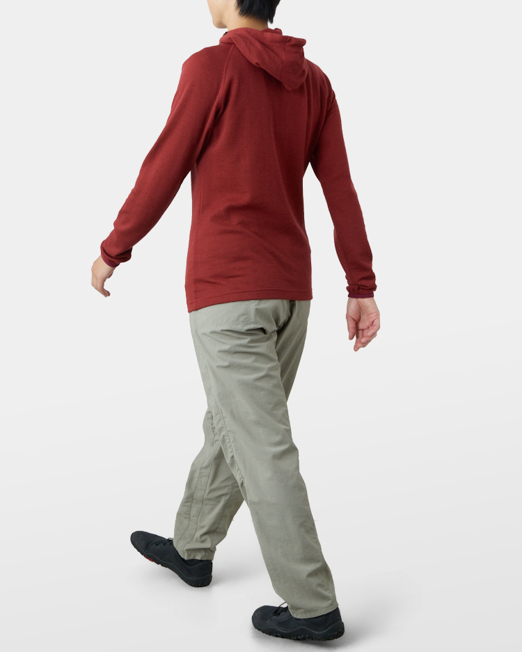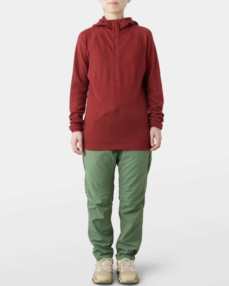 It is warm even when soaked with rain because it is made of wool with humidity-control performance and heat-generating properties. It is especially suitable under severe conditions with large temperature differences between day and night, mountaineering from low to high altitudes, and climbing where inclement weather is expected.