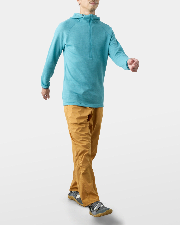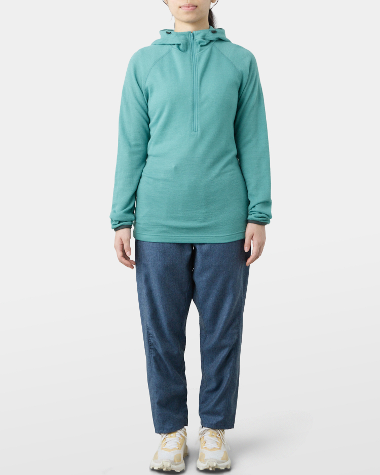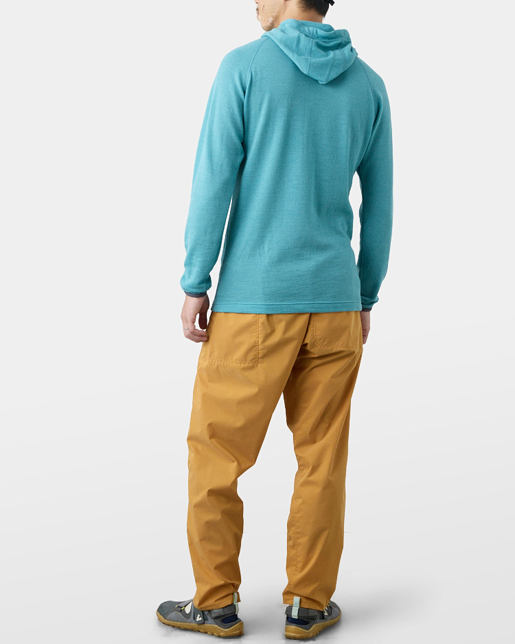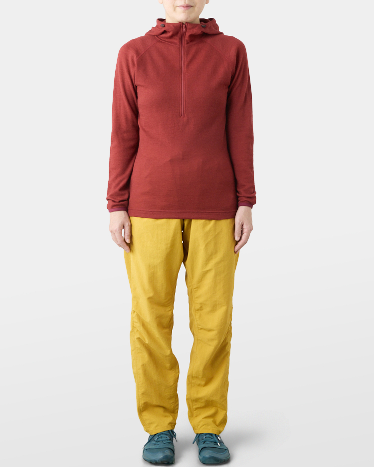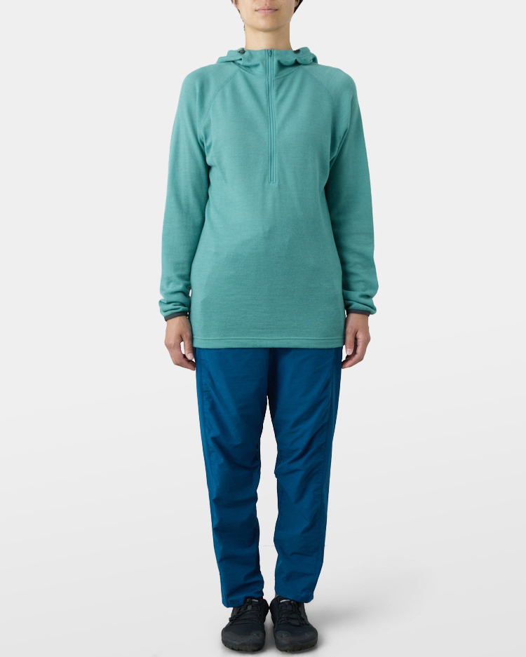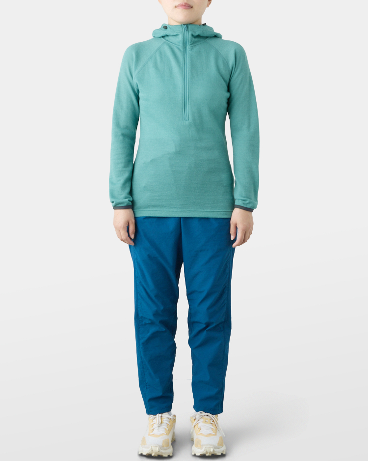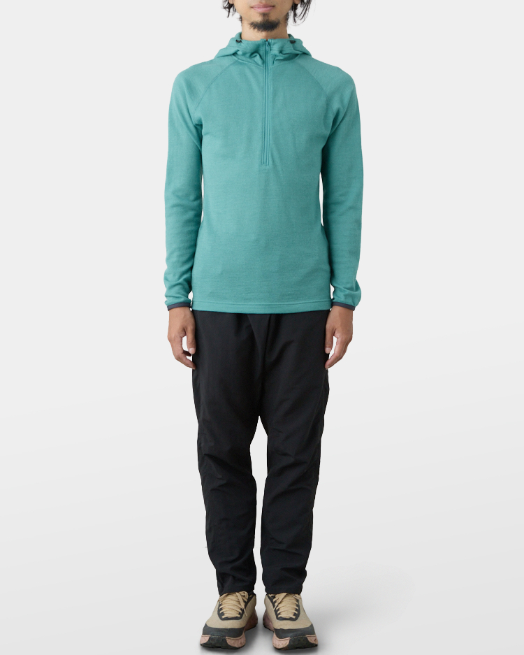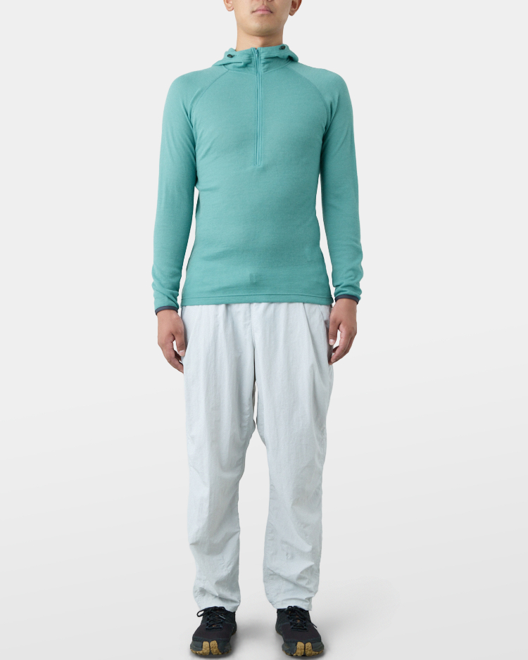 It is warm even when soaked with rain because it is made of wool with humidity-control performance and heat-generating properties. It is especially suitable under severe conditions with large temperature differences between day and night, mountaineering from low to high altitudes, and climbing where inclement weather is expected.