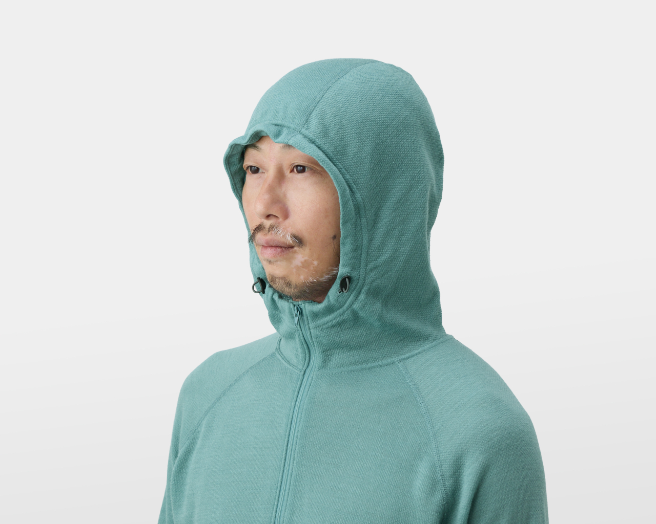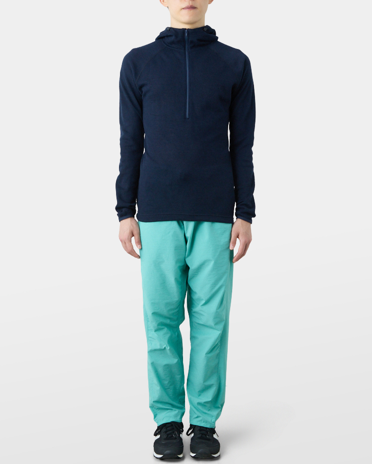 The highly absorptive dual-layer mesh fabric will keep you dry even when you sweat heavily. It is also lightweight and less likely to gain weight as it dries quicker than normal wool fabrics. The highly air-permeable fabric will let the wind pass and keep you cool when worn by itself, while it is warm if you wear it under a shell jacket. It is perfect when you need both thermal performance AND sweat/heat permeability.