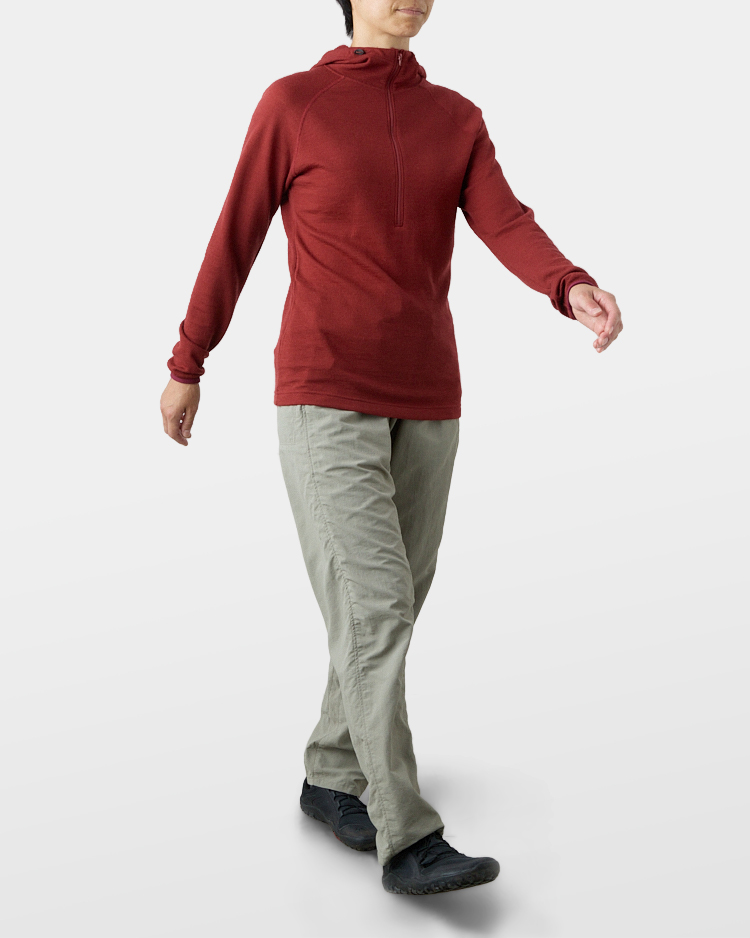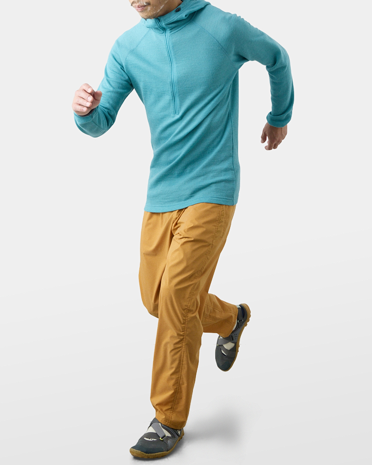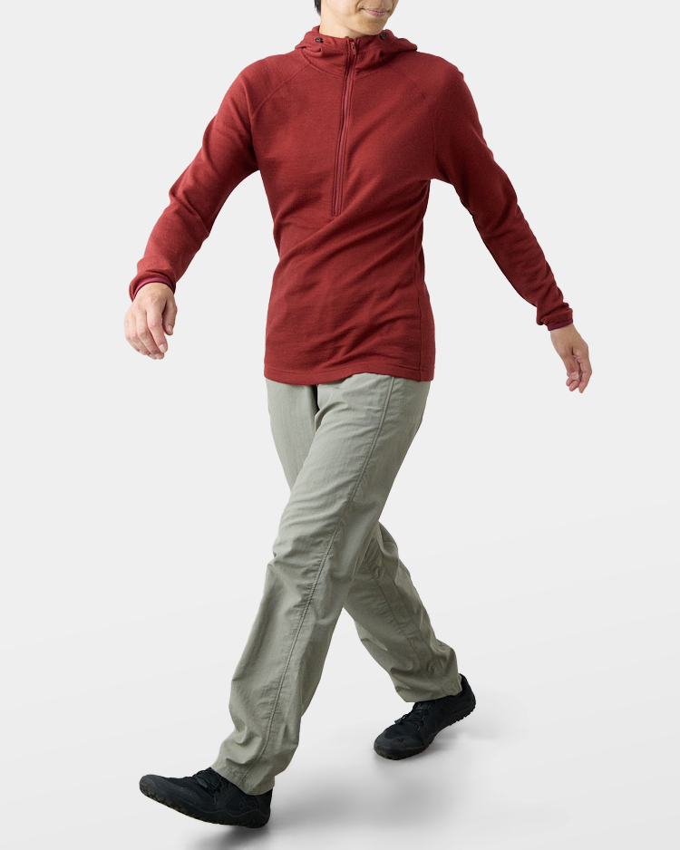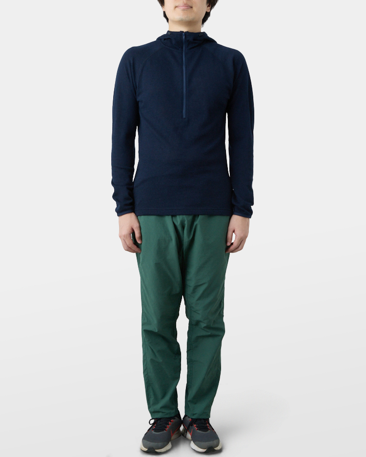 The excellent air permeability will keep you cool when you are on the move while keeping you warm when you stand still. It is even warmer if you wear a windproof jacket. As a result of the wool blend ratio being approximately 90%, it also exhibits excellent natural-derived properties such as deodorant and moisture control.