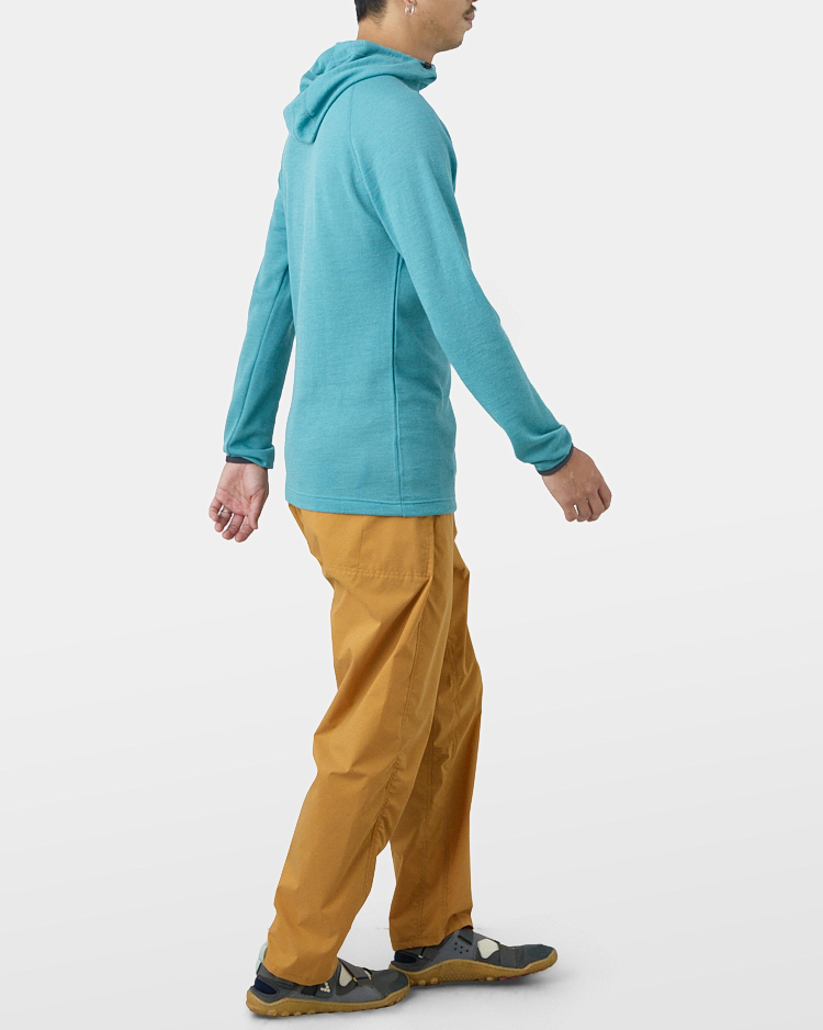 Thanks to its low thermal conductivity, it resists losing body heat, and even when damp, its natural elasticity prevents the loft from collapsing, so insulation is maintained. In addition, wool draws moisture into the fiber core and away from the skin, helping you stay warm and comfortable on the move.