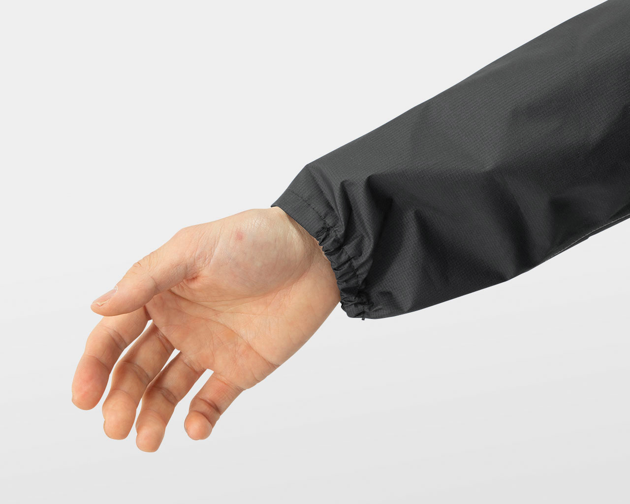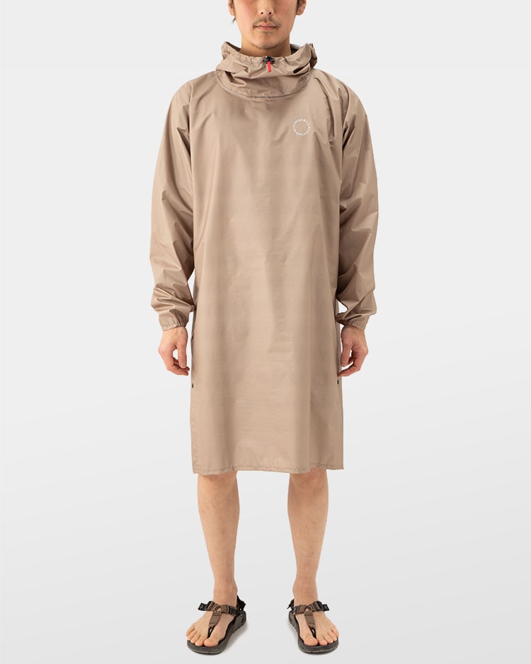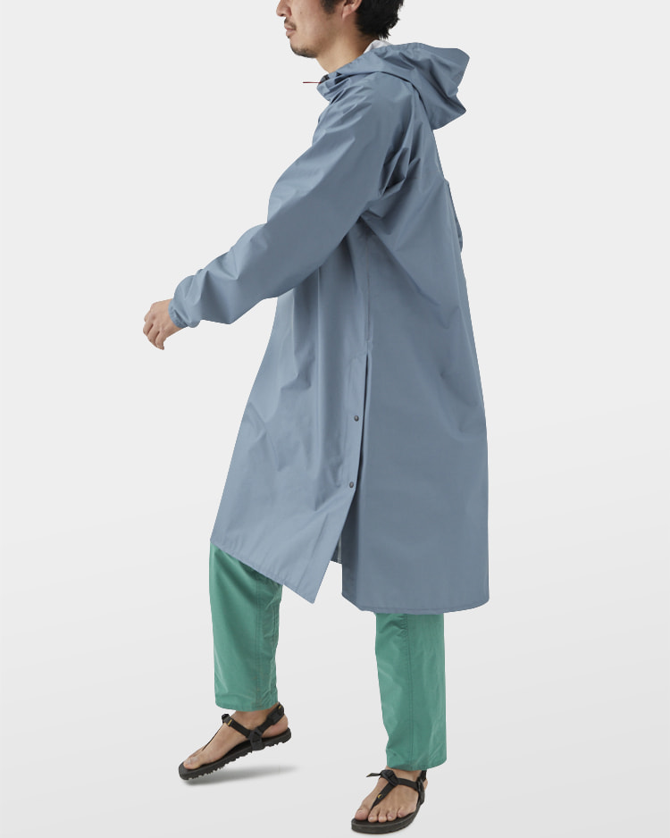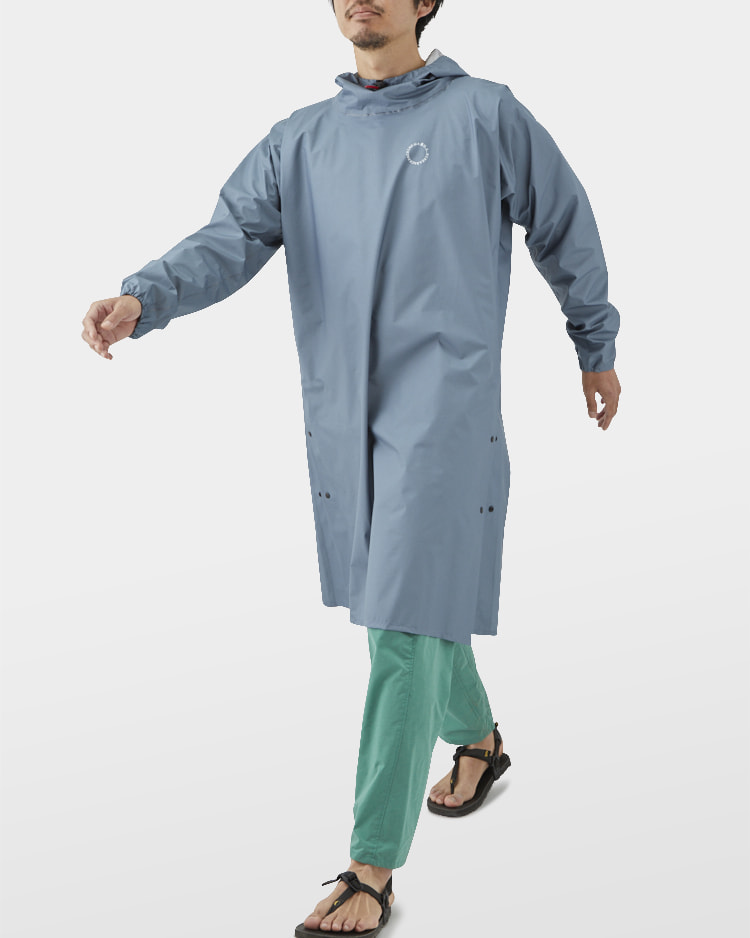The UL All-weather Long Hoody is long enough to wear without rain pants, offering an unparalleled sense of freedom around the legs. Weighing only 130g in size S, it is about half the weight of a normal set of rain jacket and rain pants.