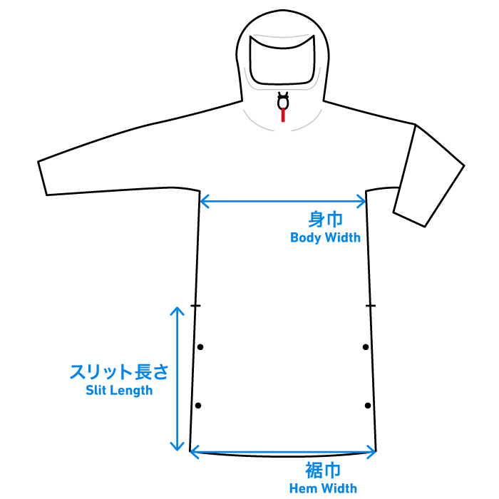 The Long Hoody is especially convenient if worn together with our 5-pocket series pants/shorts, and all five pockets can be directly accessed from the slits.