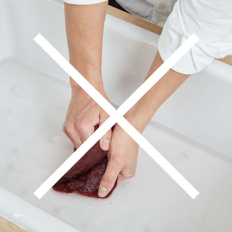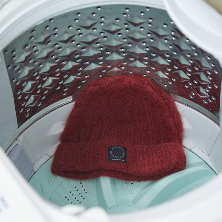 1. Fill the water in the washbasin or bucket, pour an adequate amount of neutral detergent, and stir it. The water temperature must be 30°C or lower as warmer water may cause the fabric to be hardened and felted. Do not add too much detergent so that it is completely washed away after the rinse.