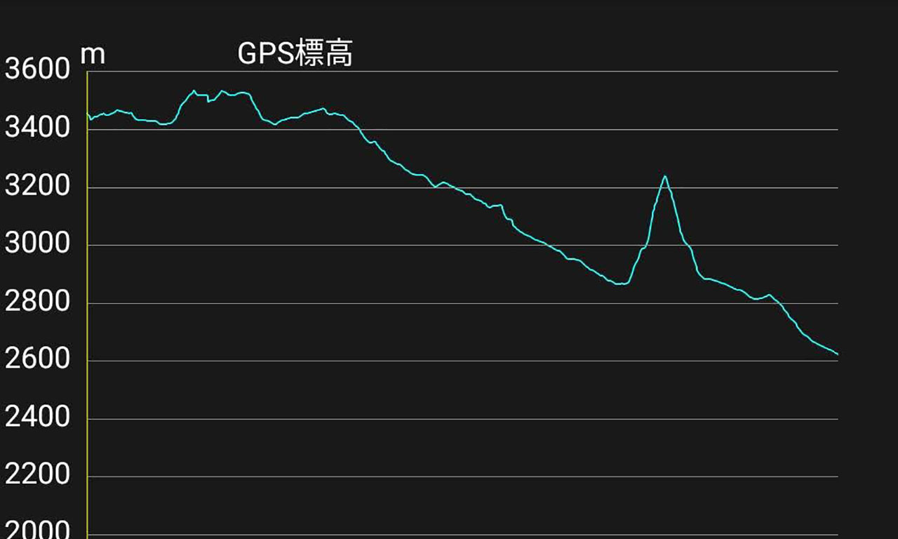 GPSの軌跡、前峰の急登具合がよくわかる。
