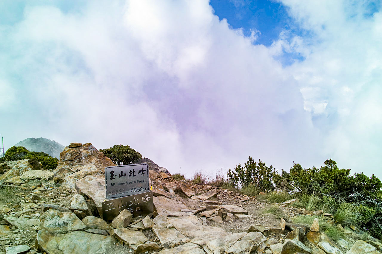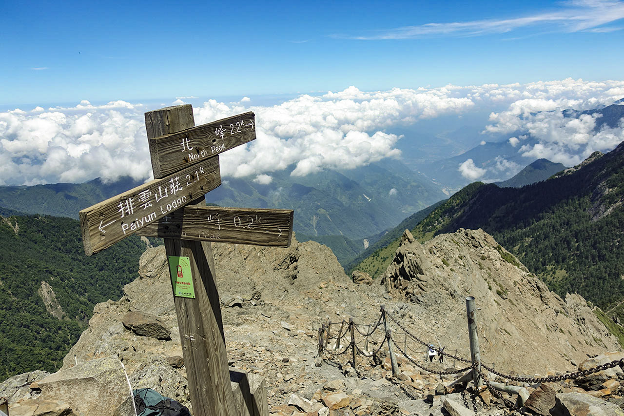山頂でたたずんでいると、後から台湾のハイカー2人組が登ってきた。やはり単独登山であることを驚かれ、いろいろと事情を聞かれる。これから東峰と北峰に行くと告げると、東峰・北峰は往復にそれぞれ3時間かかるので無理ではないかと止められる。