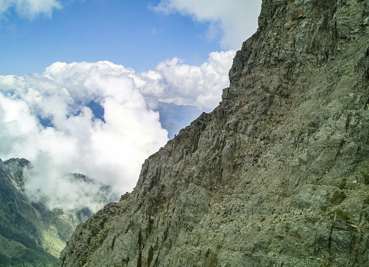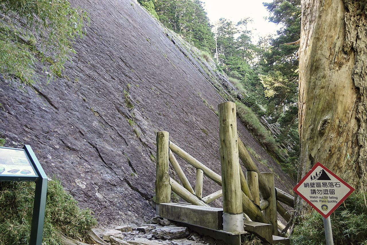 途中で大峭壁という巨大な岩壁を通過する。この場所を越えると排雲山莊まであと少しだ。
