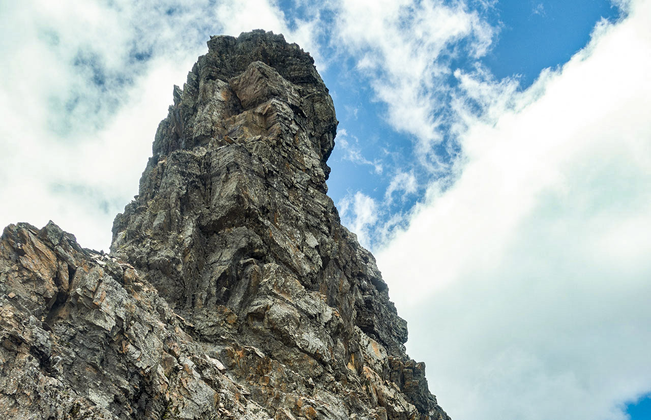 とは言っても主峰までが特別に親切だっただけで、日本の北アルプスなどの登山道と変わりはない……はずなのだが、気がつくと道を誤ってしまっていた。いかにも正規のルートのように見える坂を降りていくと、いつの間にか落石の巣のような場所に入り込んでしまった。