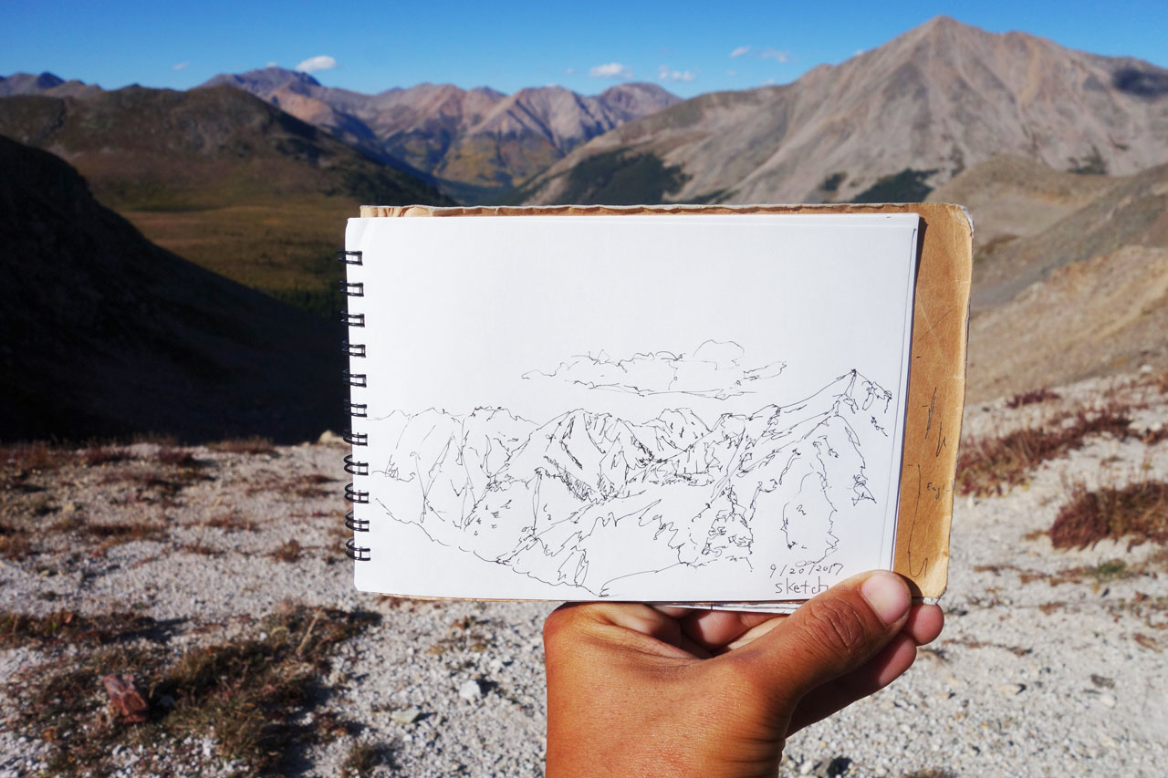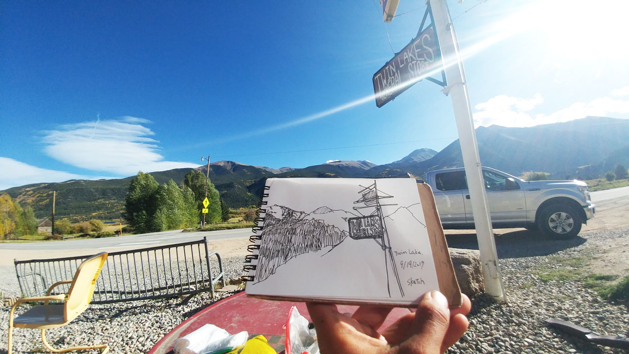 休息しながらコロラドの山脈を簡単にスケッチ。