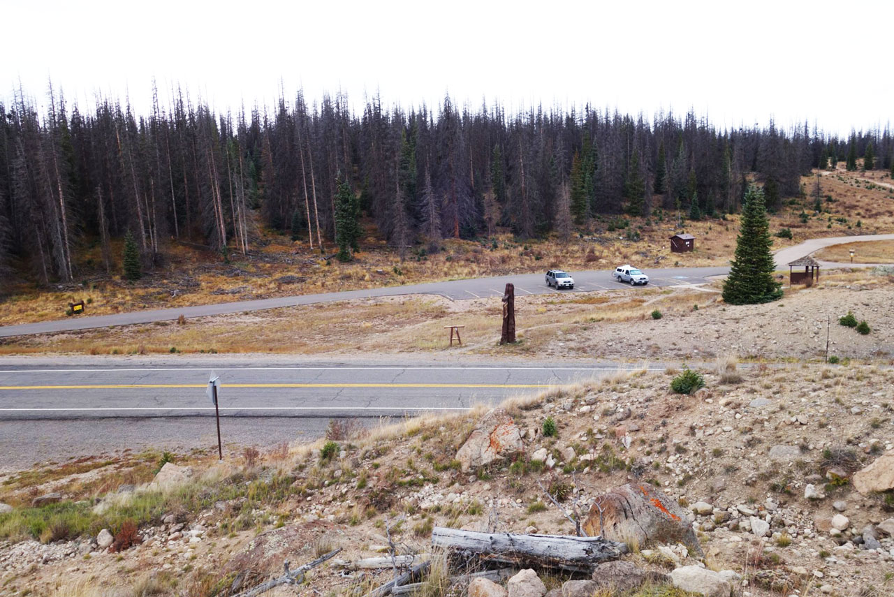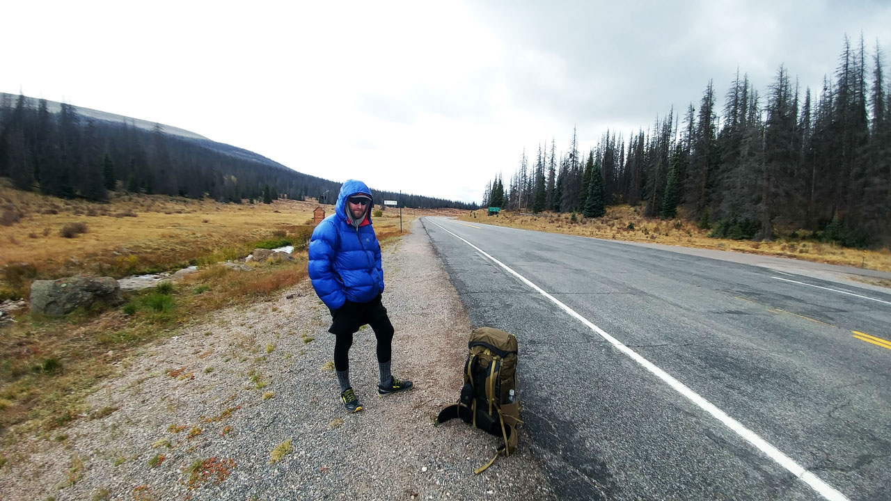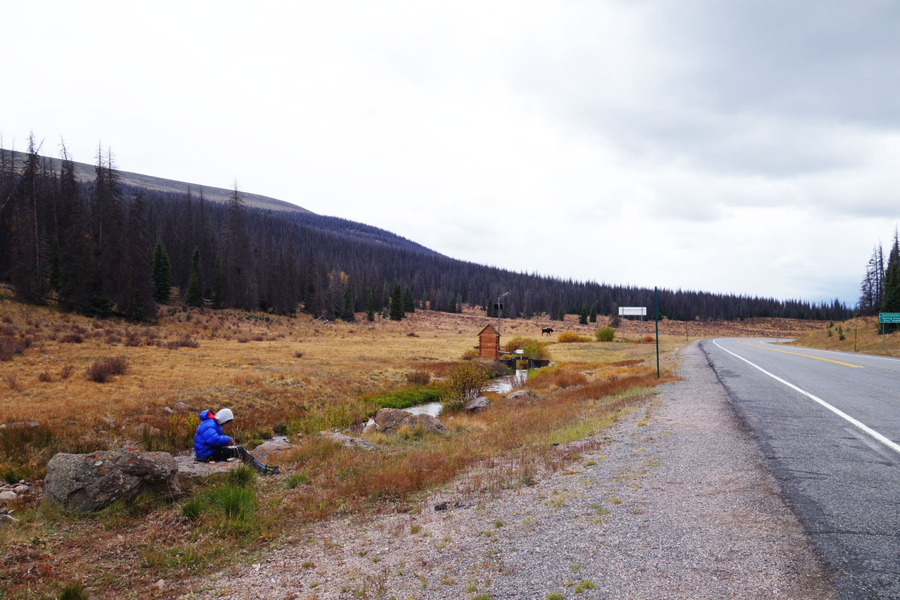 レイク・シティへ続くハイウェイが走るスプリング・クリーク・パスに辿り着いたのは15時を少し過ぎたあたりだ。登山者のための小さな駐車場と簡易トイレがあり、クルマが数台停められていた。標高が低いおかげで積雪はないが、遮蔽物が少ないため風が強く、とても寒い。僕は急いでバックパックからダウンジャケットを引っ張り出し、レインウェアの下に着る。