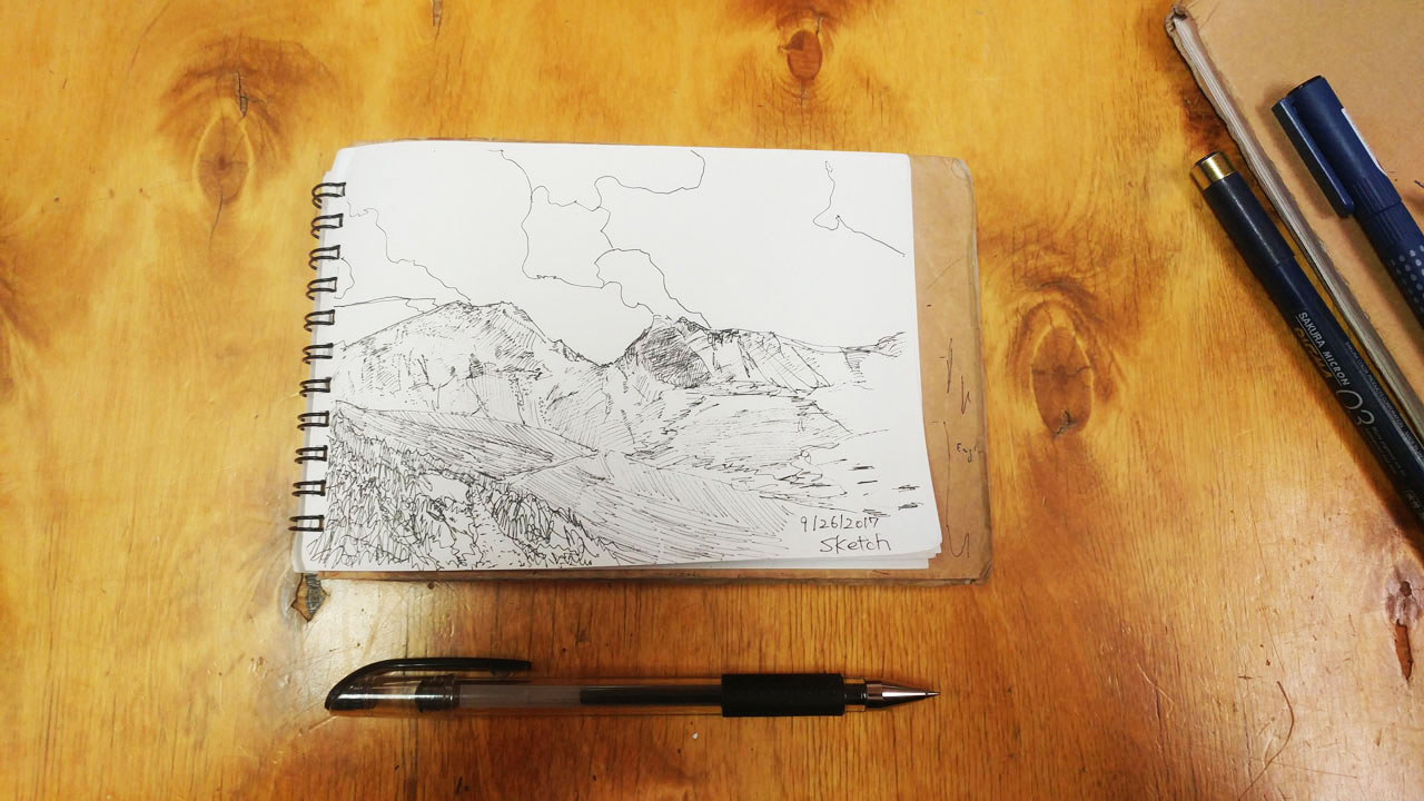 理由は、一度歩くと決めたルートを逸脱することに強く抵抗があるからだ。どのハイカーも大まかなルートと日々の歩行距離を決めて、どうすればワンシーズンに全行程を歩き切れるか作戦を立てる。CDTの南下ルートでは、コロラド州で雪がトレイルを閉ざすまでに通り抜ける事が重要なポイントだった。だから、僕はこれまでサンファンかクリードを通り抜けるために、早朝から日が暮れるまで歩き続けて40kmを下回らないようにしていたし、そのためにはトレイル上で描くスケッチもなるべくシンプルに収めるよう、自分なりに努力をしてきた。ここで大きくCDTルートから外れて、このセクションを簡単に抜けるのは、これまでの歩き方を無駄にしてしまうようで、どうにも納得できない。