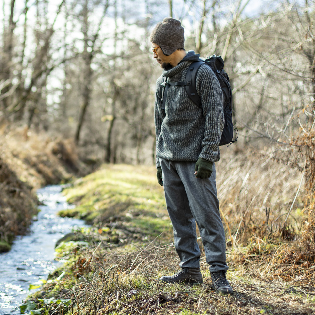 Merino Cap – Navy / Merino Hoody – Gray / 5-Pockets Merino Pants – Navy