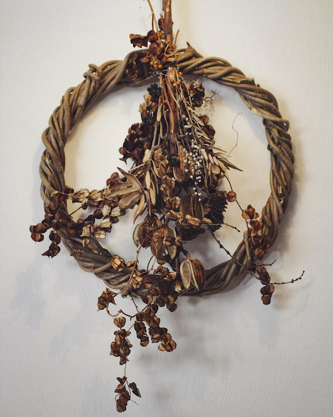 女性らしい繊細さと、山の無骨さが程良くミックスされた素敵なリース。