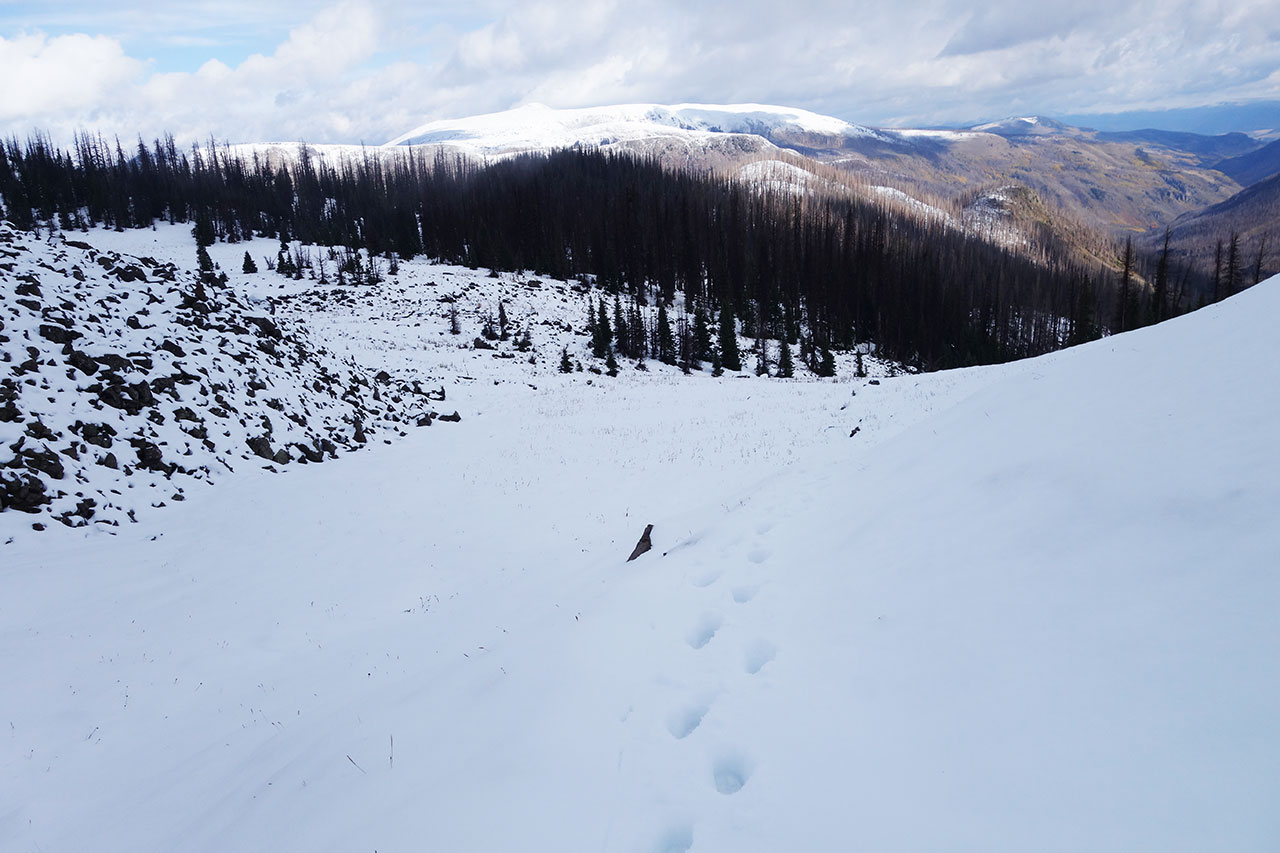 他の足跡は見当たらない。朝から誰もこのルートを歩いていないようだ。先行するハイカーたちがとても離れているのか、もしくはみんな、迂回してグレート・ディバイド・トレイルを歩いているのだろうか。