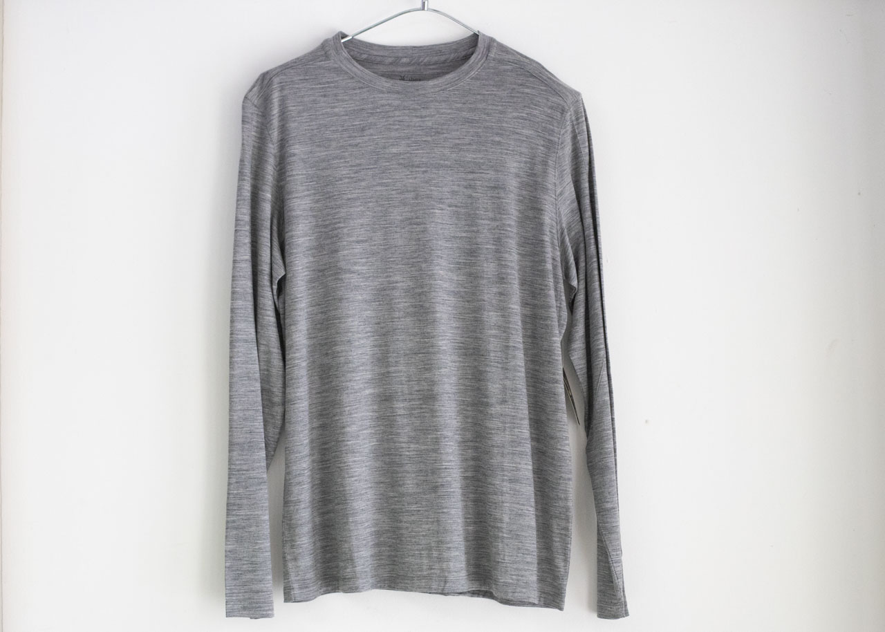 土屋さんお気に入りのプレーンなロングTシャツ型のアイベックスのメリノロングスリーブシャツ。