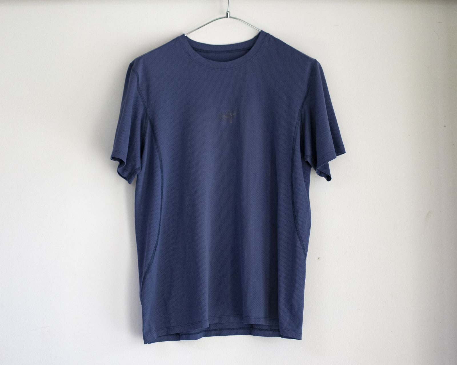 フェイジックSL ポリエステル糸を使用したアークテリクス・フェイズSLクルーネックシャツの過去モデル。生地の表面を見るとストライプ状になっているのがわかる(桑原さん私物)。
