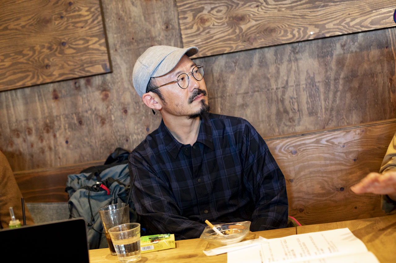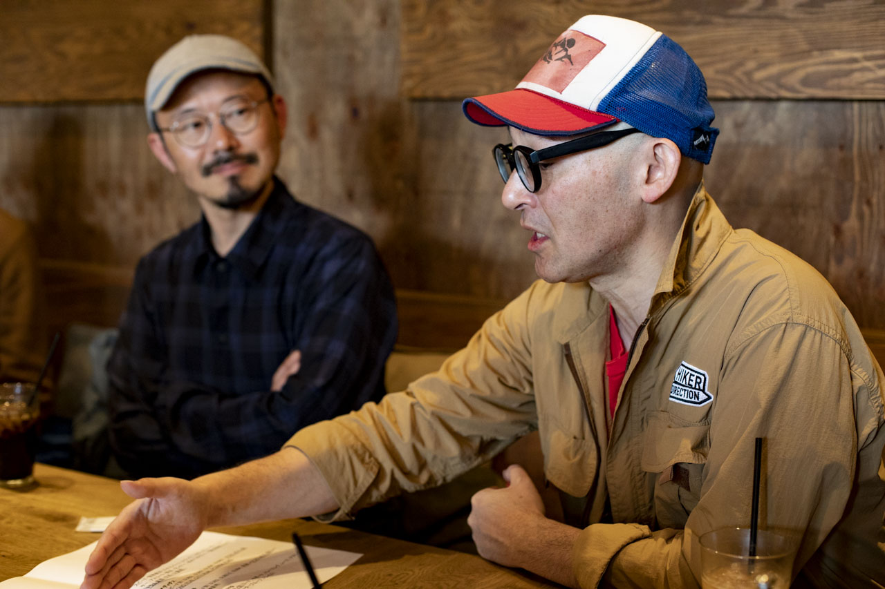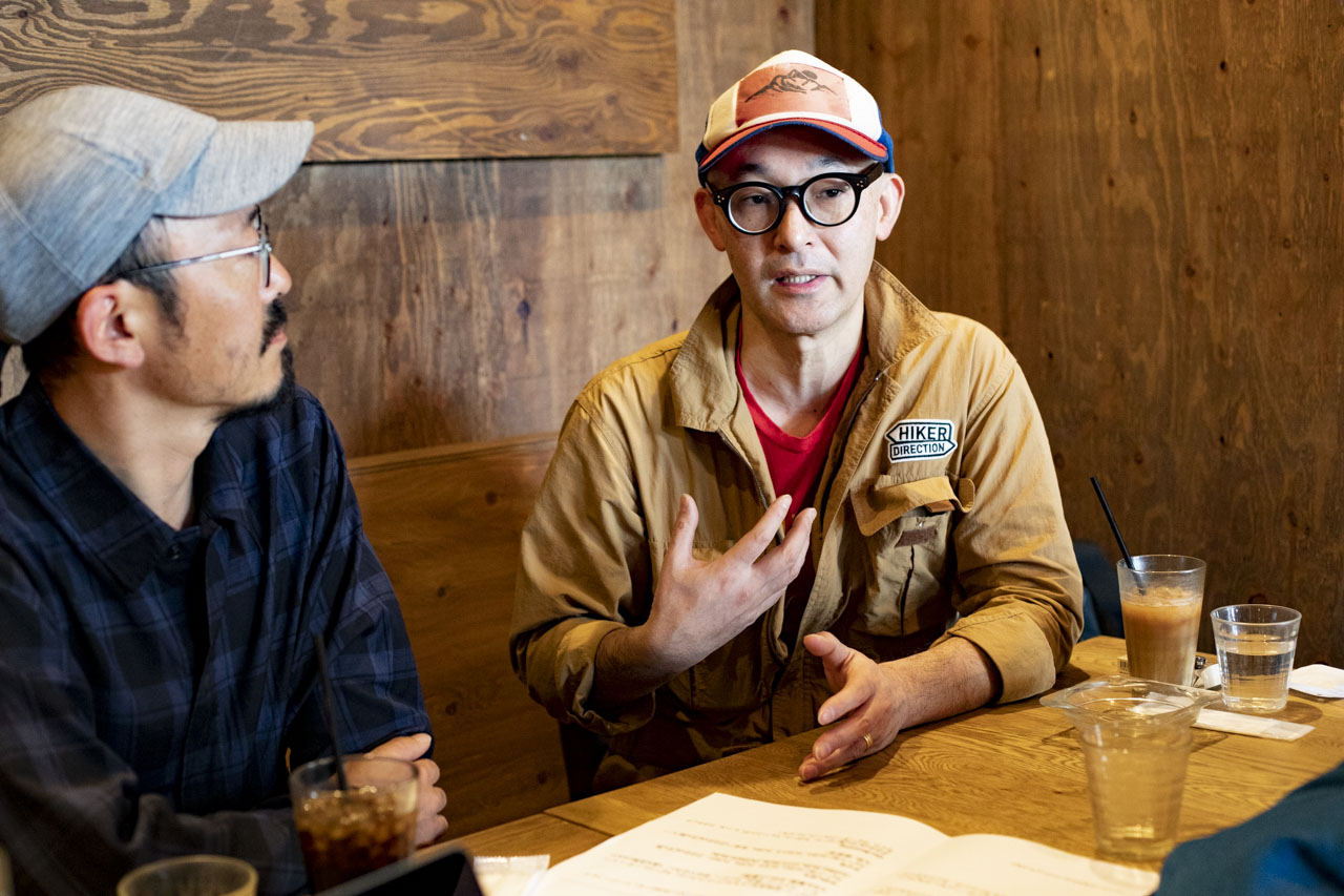 そんなベースレイヤーの調査と考察を、レインウェア編と同様にこれから検証実験を踏まえつつ圧倒的密度で進めていく所存なのですが、その前の論点整理のため、ハイカー代表として『ハイカーズデポ』の土屋智哉さん、ランナー代表として『Run boys! Run girls!』の桑原慶さんをお招きし、両者の視点から現代のベースレイヤーを取り巻く現状や課題点について、山と道ラボの夏目彰と渡部隆宏も交えた鼎談を行いました。