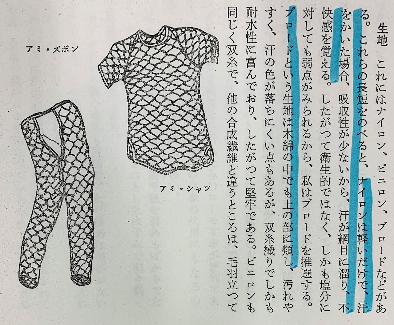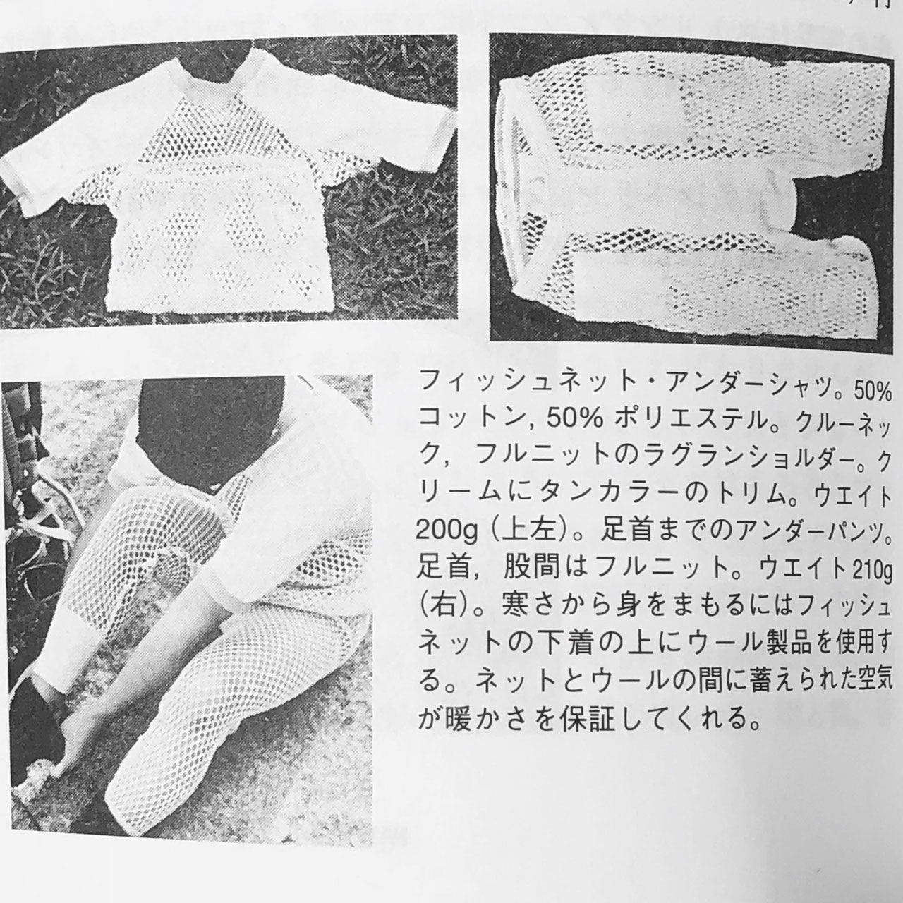 1960年代に入ると、アクリル製のウェアやウールシャツなどが用いられるようになる。この時期に下着の素材や機能性に対する理解や関心が高まり始め、網シャツの有用性も浸透するようになった。