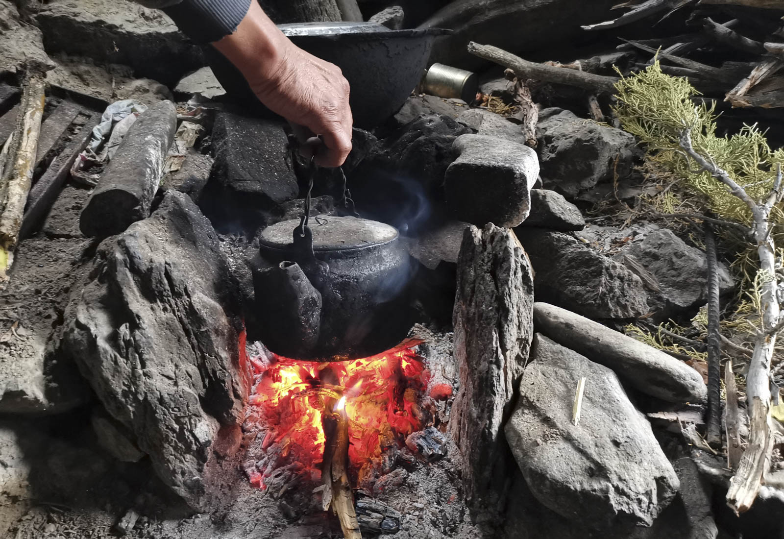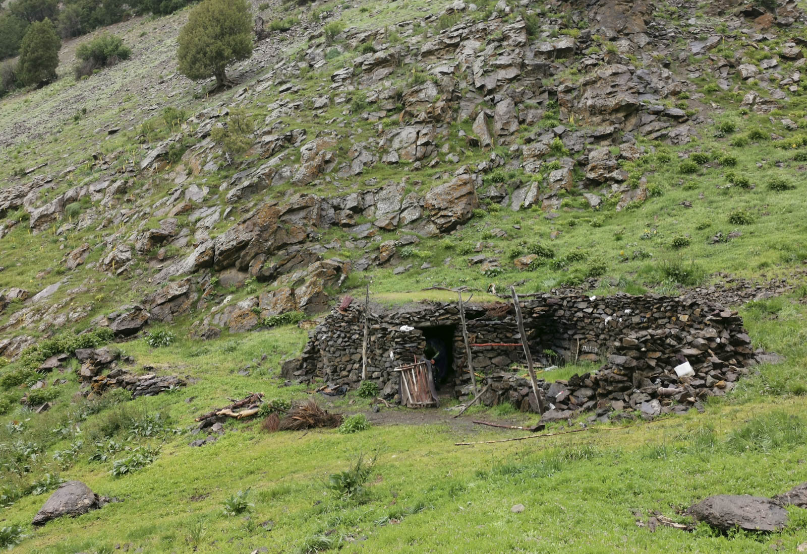 別セクションにて:6月になると小麦粉やじゃがいもを馬に積んで、家畜と共に夏の拠点に向かう。誰も住まなくなった石積みの家は山小屋のような役割を果たしていて、このような小屋を転々としながら3日くらいかけて本拠地(作りは同様)に向かう。