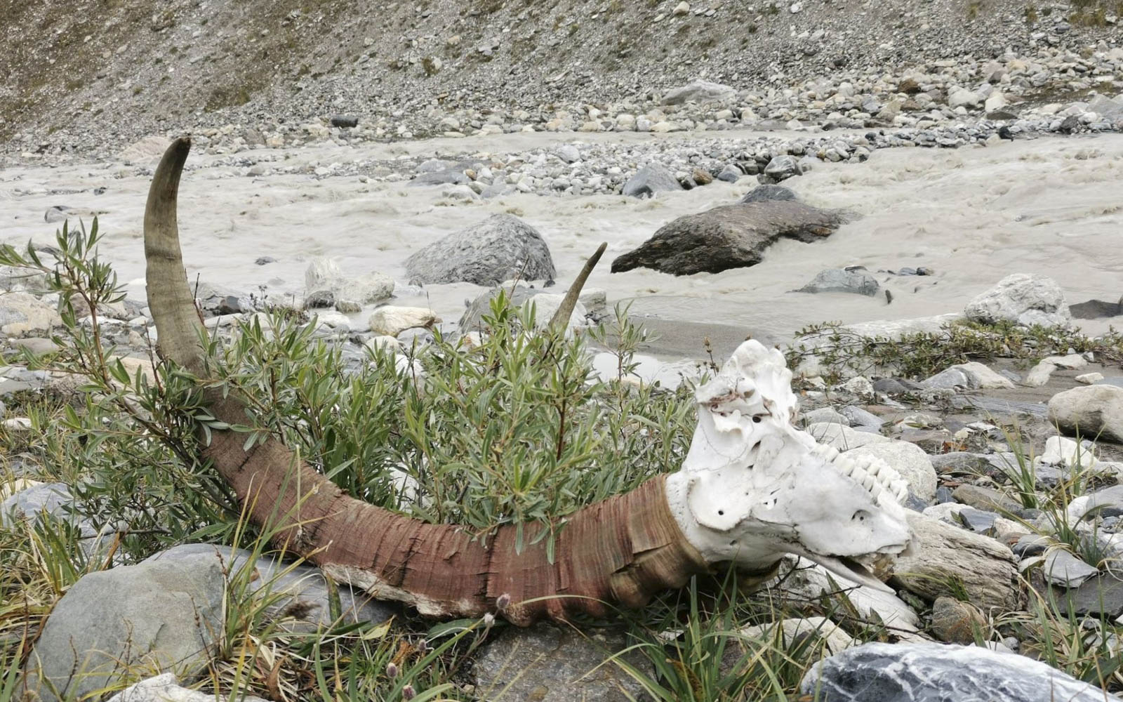 彼のそばに、80cmはありそうな野生のアイベックスの角が転がっていた。彼に降りかかったその強烈な死臭は、2m先からでも漂ってきた。