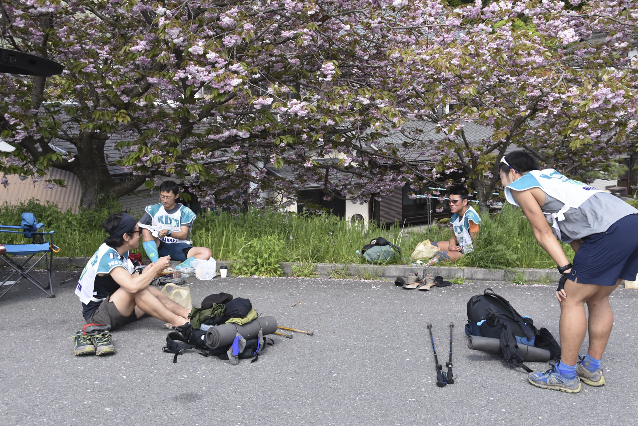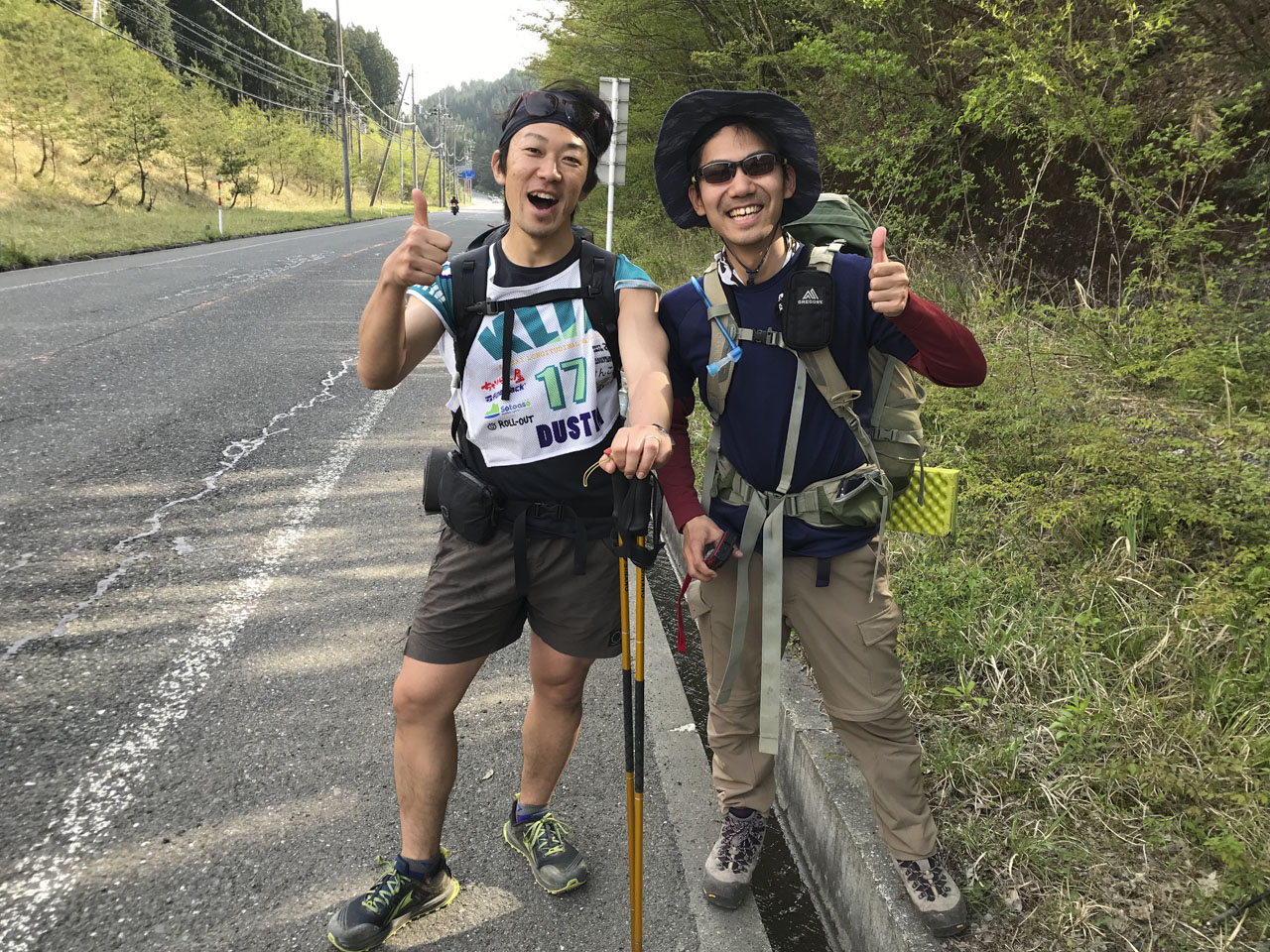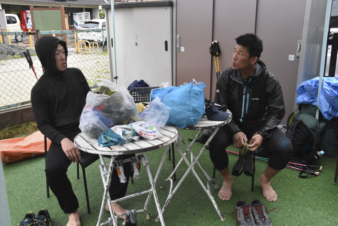 大股集落へは19時ごろに到着。すると集落から離れたところで大原選手と円井選手を見つけた。どうやら高野山を目指して先に進むようだ。「ダスティンも一緒に行くか?」と声を掛けられたが、それにかぶせるぐらいの勢いで「行きません!」と返答した。疲労と寝不足という理由もあったが、登った先の道中で雨風を凌げるポイントを見つけられるかも不安だったからだ。