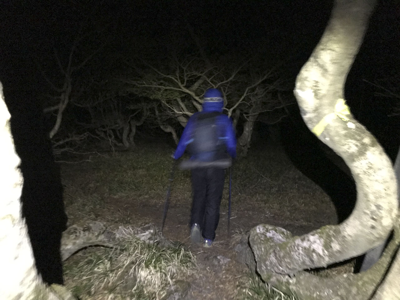 23時過ぎ、前を行く大原選手も暗闇のルートファインディングにかなり手こずっており、三重嶽までなかなか到着しない…。