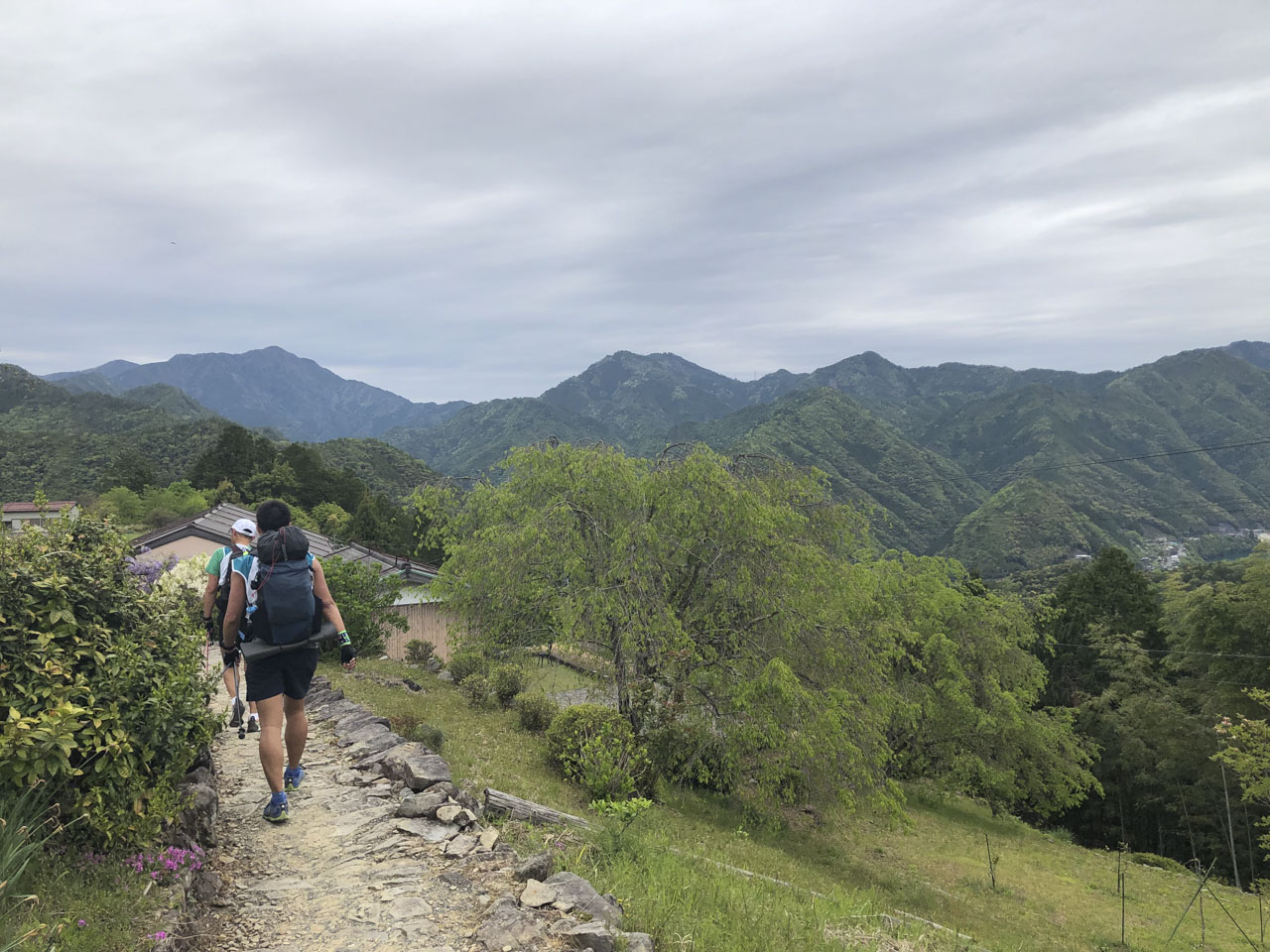 7時過ぎ、熊野大社で参拝を済ませ、裏手にある高野山への道標を探し、そこから小さなトレイルへと入っていく。結局、朽見選手は僕が参拝中に先へ進んだらしく、このあとゴールまで彼の姿を見ることは無かった。