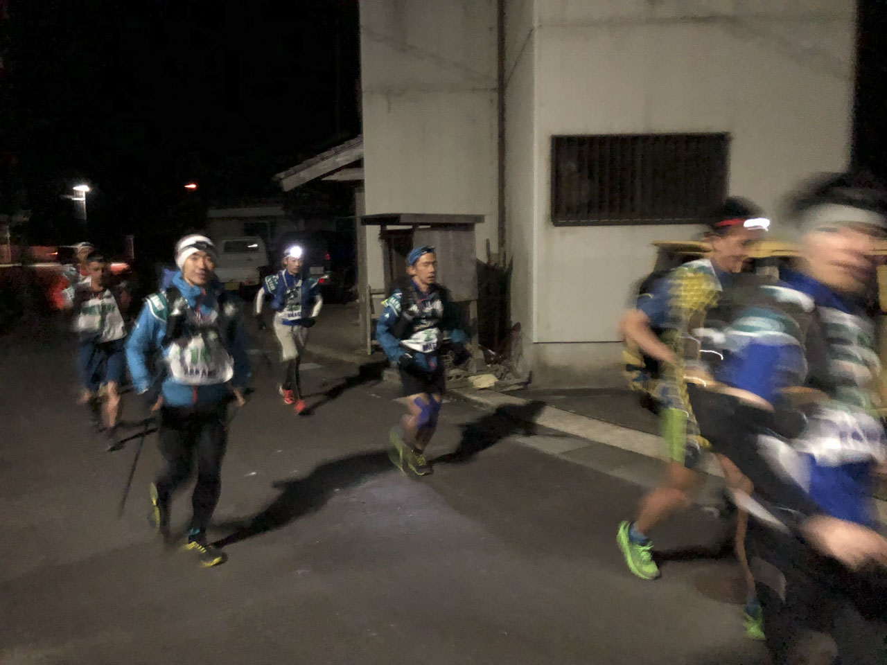 2番手集団という形で朽見選手が先行し片野、星加選手と続いた。朽見選手はまだまだ序盤と言った様子で休憩しながらのペース。片野、星加選手が途中から先を行かせてもらうが、星加選手が集落への下りから遅れ気味となり単独走になった。星加選手は先週『さくら道国際ネイチャーラン』で250kmを走破したばかり、つくづく変態の集まりだと感じる。