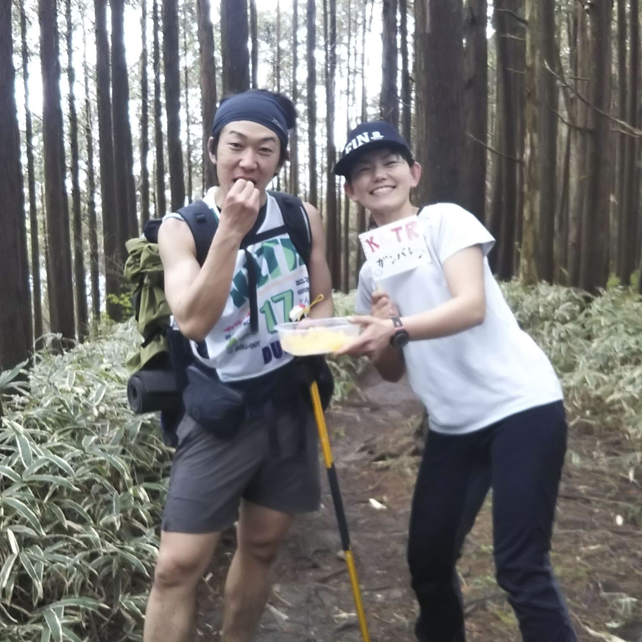 11時ごろ、蛇谷ヶ峰からの下りで応援してくれた元気お父さんと写真を撮影した。撮った写真をわざわざSNSで送ってくださり、更に応援を頂いた。大原選手は脚が浮腫んできておりあまり調子が上がらないようだった。