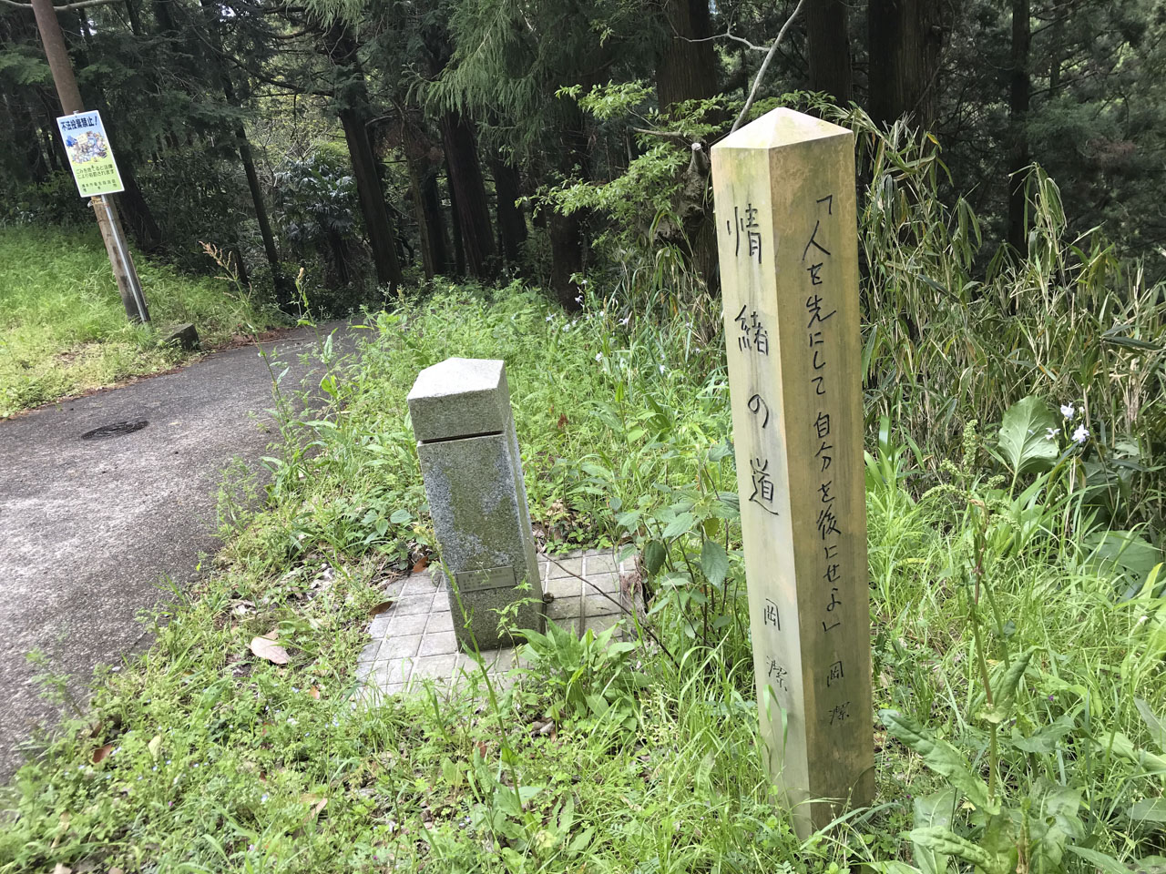 紀見峠の手前でプレスの阿部カメラマンの撮影があり、暑いなど愚痴を言いながら通り過ぎる。その直後に岡潔さんの『人を先にして自分を後にせよ』の道標を見かけたが、今の自分にそんな余裕はなく、「少しでも先に進みたい」とSNSに投稿した。
