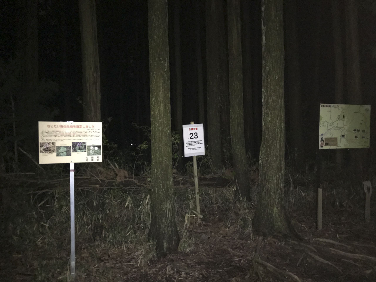 道標を頼りに木戸峠、葛川峠と順番に北上して行くがトレイルが薄く、マーキングのテープもかなり小さく何度もルートから外れる。それでも上手く修正しながら進んでいたが、大会ルート上にない鳥谷山へ登頂してしまった時点でしっかりルートファインドできてないと判断し、どこかで仮眠をとったほうが良いと感じた。
