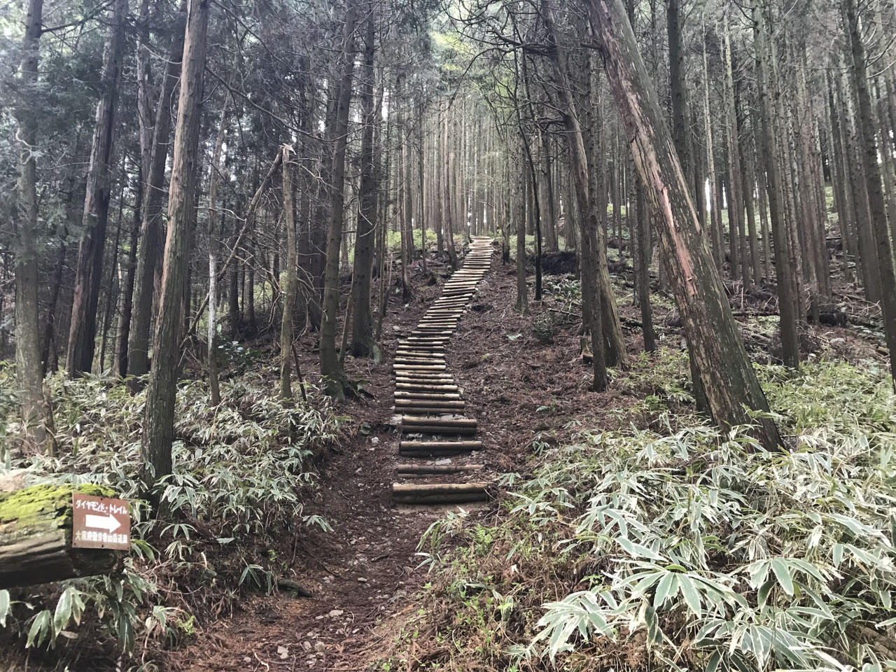 自分が先行させて貰う形でしばらく行くと、とんでもなく長い階段が出現し、「ゲ!」と思わず口に出た。階段の始まる手前で写真を1枚撮り、息切れしないように淡々と登る。階段を登りきったとこから小さなアップダウンが始まる。早歩きでさばいていったが、思いのほか調子よく進んでおり、後ろにいた前田選手は見えなくなっていた。