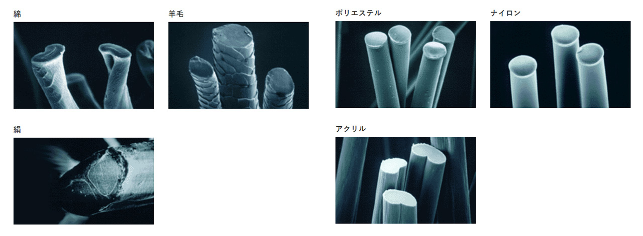 各天然繊維、化学繊維の電子顕微鏡による拡大写真